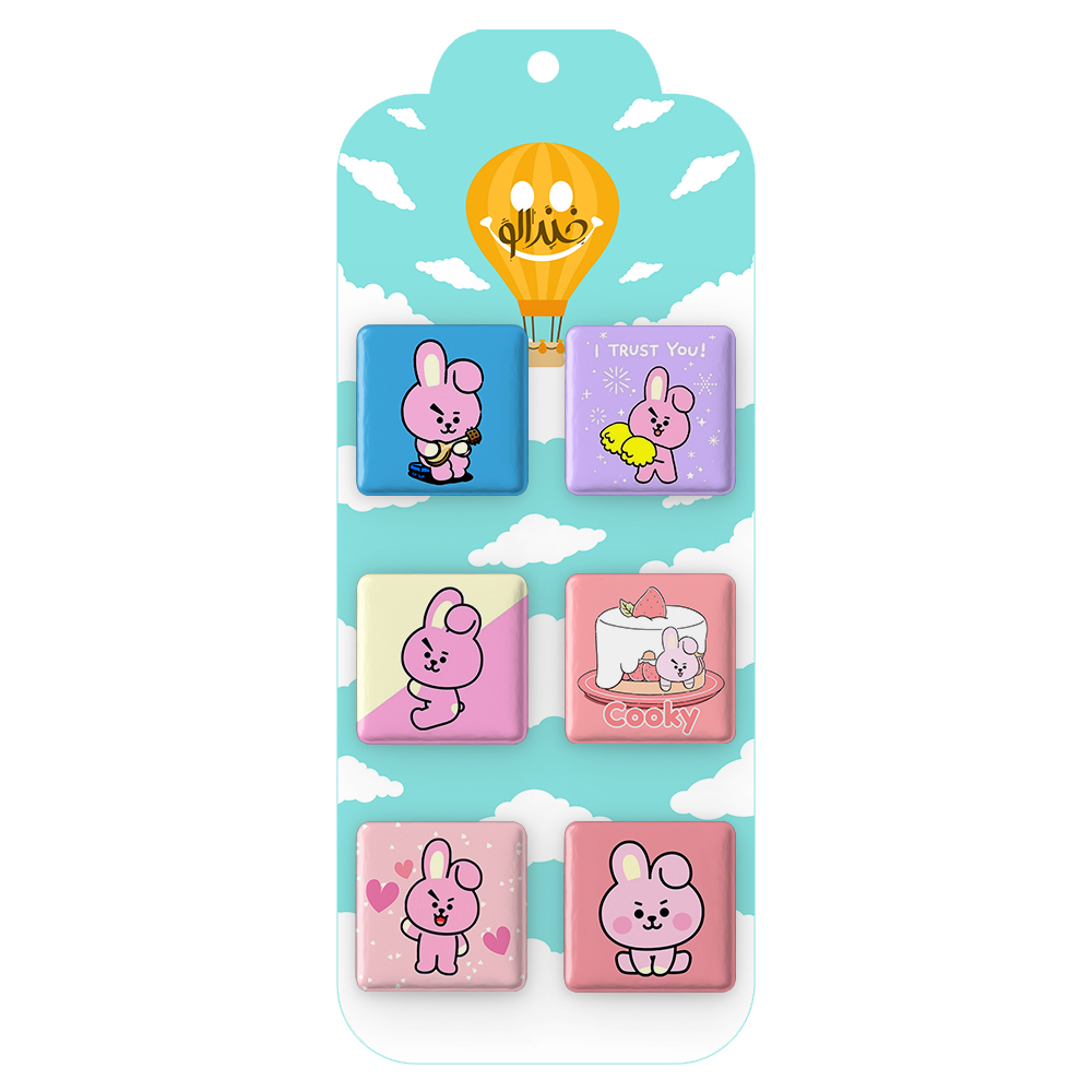 پک ۶ عددی مگنت مربعی خندالو طرح کوکی BT21 Cooky محصولی جدید، جذاب و منحصر به فرد هستند که با بالاترین سطح کیفی تولید می شوند.فرم مربعی مگنت های خندالو، آنها را بدل به محصولی خاص و کمتر دیده شده کرده است. آهنربای پشت مگنت ها، به نحوی تولید شده اند که هنگام نصب بر روی سطوح آهنی ایستایی بسیار خوبی دارند و به راحتی کنده نمی شوند. در چاپ طرح های مگنت خندالو از بهترین جوهر و کاغذ موجود استفاده می کنیم تا جلا و جذابیت طرح، کاملا حفظ شود.