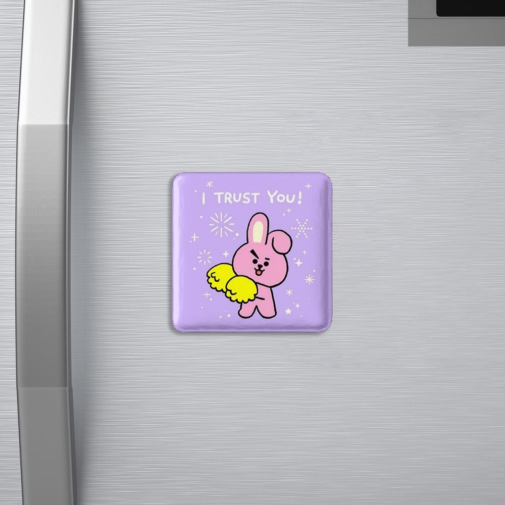 مگنت های مربعی کوکی BT21 Cooky خندالو محصولی جدید، جذاب و منحصر به فرد هستند که با بالاترین سطح کیفی تولید می شوند. فرم مربعی مگنت های خندالو، آنها را بدل به محصولی خاص و کمتر دیده شده کرده است. آهنربای پشت مگنت ها، به نحوی تولید شده اند که هنگام نصب بر روی سطوح آهنی ایستایی بسیار خوبی دارند.