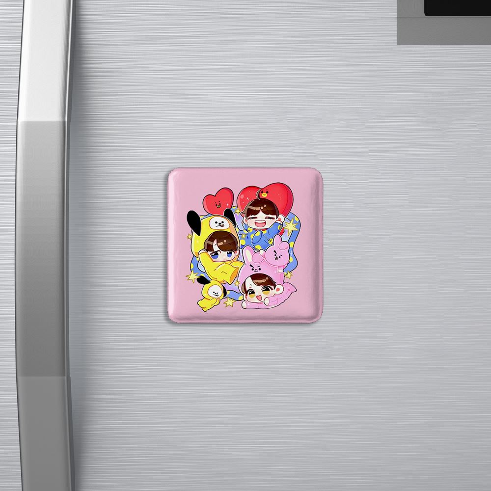 مگنت های مربعی گروه بی تی اس BTS خندالو محصولی جدید، جذاب و منحصر به فرد هستند که با بالاترین سطح کیفی تولید می شوند. فرم مربعی مگنت های خندالو، آنها را بدل به محصولی خاص و کمتر دیده شده کرده است. آهنربای پشت مگنت ها، به نحوی تولید شده اند که هنگام نصب بر روی سطوح آهنی ایستایی بسیار خوبی دارند.
