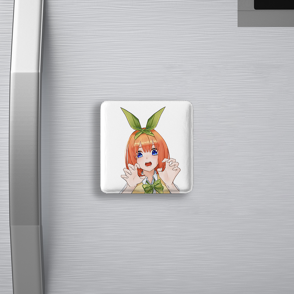 مگنت های مربعی یوتسوبا انیمه پنج عروس مساوی خندالو محصولی جدید، جذاب و منحصر به فرد هستند که با بالاترین سطح کیفی تولید می شوند.فرم مربعی مگنت های خندالو، آنها را بدل به محصولی خاص و کمتر دیده شده کرده است. آهنربای پشت مگنت ها، به نحوی تولید شده اند که هنگام نصب بر روی سطوح آهنی ایستایی بسیار خوبی دارند و به راحتی کنده نمی شوند. چاپ مگنت مربعی یوتسوبا انیمه پنج عروس مساوی نیز با دستگاه های استاندارد و با بهترین سطح کیفی صورت گرفته و طرح با شفافیتی مثال زدنی و با روکشی شفاف و بدون خط و خش بر روی مگنت نقش بسته است. همچنین بسته بندی جذاب و مینیمال مگنت ها، آنها را بدل به محصولی مناسب هدیه کرده است. مگنت ها قابل نصب بر روی یخچال، کمد های آهنی، چارچوب درها، وایت بردها و هر سطح آهنی دیگری هستند که علاوه بر جذابیت و زیبایی خود آنها، از مگنت ها به عنوان وسیله ای برای قرار دادن عکس روی یخچال و کاغذ روی وایت برد و موارد مصرف دیگر میتوان بهره برد. جنس آهنربای پشت مگنت یوتسوبا انیمه پنج عروس مساوی به گونه ای است که کمترین خط و خشی را بر روی یخچال و سایر سطوح باقی نمیگذارد و به هیچ عنوان بدنه یخچال را زخمی یا خراب نمیکند.