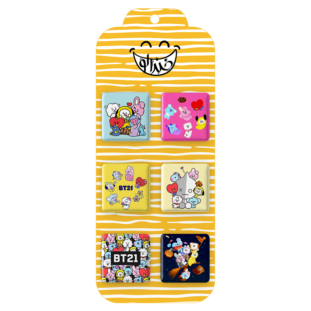 پک ۶ عددی مگنت مربعی خندالو طرح BT21 محصولی جدید، جذاب و منحصر به فرد هستند که با بالاترین سطح کیفی تولید می شوند.فرم مربعی مگنت های خندالو، آنها را بدل به محصولی خاص و کمتر دیده شده کرده است. آهنربای پشت مگنت ها، به نحوی تولید شده اند که هنگام نصب بر روی سطوح آهنی ایستایی بسیار خوبی دارند و به راحتی کنده نمی شوند. در چاپ طرح های مگنت خندالو از بهترین جوهر و کاغذ موجود استفاده می کنیم تا جلا و جذابیت طرح، کاملا حفظ شود.