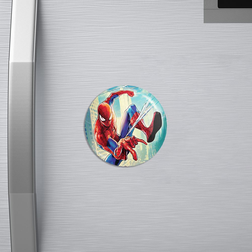 مگنت مرد عنکبوتی Spider Man خندالو با روکش سلفون مات مخملی ضدخش و قطعه پشتی فلزی تولید شده است که آهنربای اتمی بکار برده شده در محصول، بصورت مخفی تعبیه شده ودیده نمی شود. ضمن اینکه گیرایی بسیار بالایی داشته و به هیچ عنوان از روی یخچال نمی افتد.