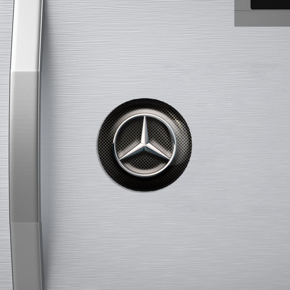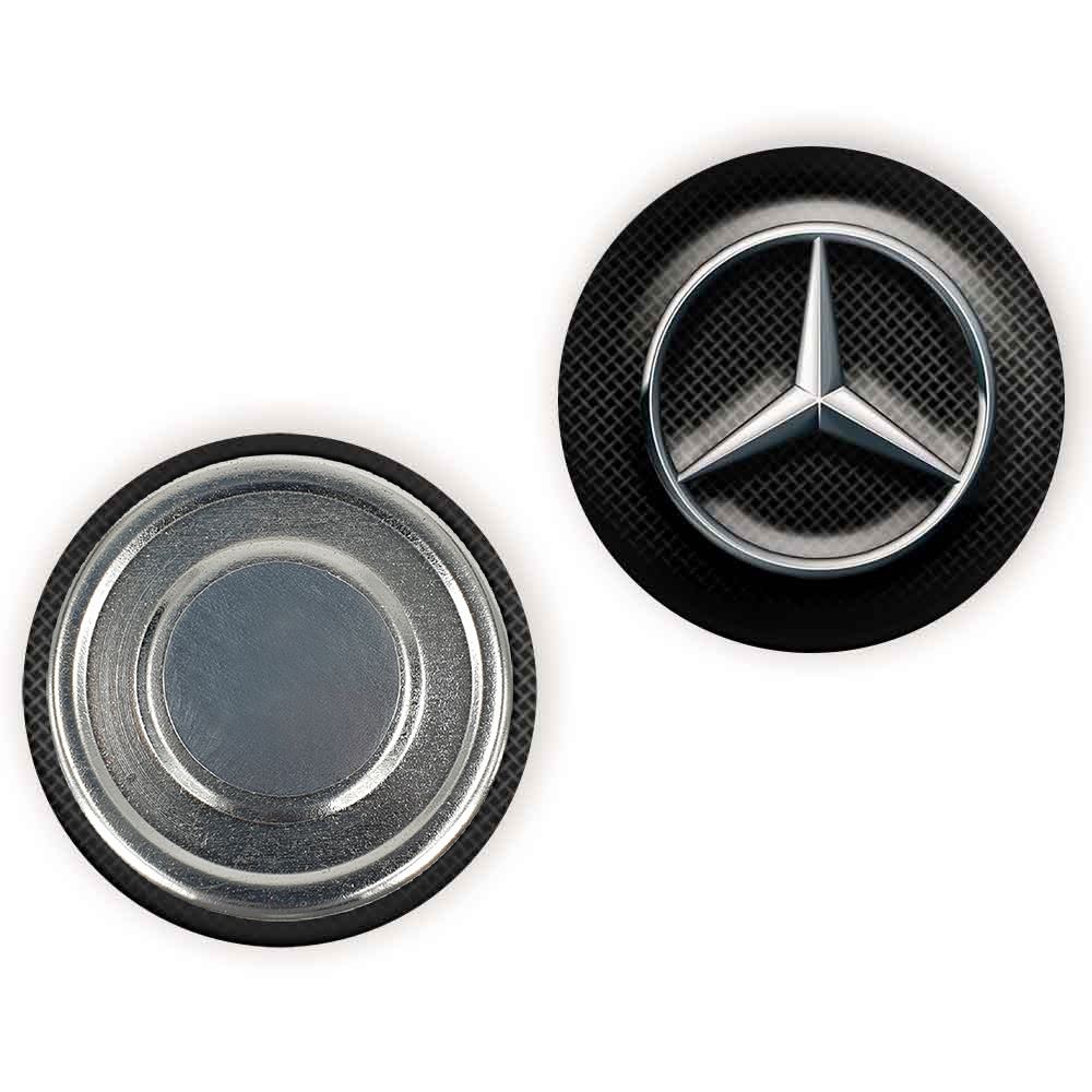 مگنت مرسدس بنز Mercedes Benz خندالو با روکش سلفون مات مخملی ضدخش و قطعه پشتی فلزی تولید شده است که آهنربای اتمی بکار برده شده در محصول، بصورت مخفی تعبیه شده ودیده نمی شود. ضمن اینکه گیرایی بسیار بالایی داشته و به هیچ عنوان از روی یخچال نمی افتد.
