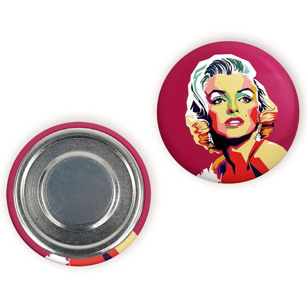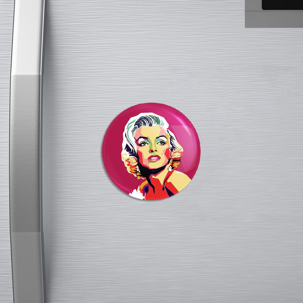 مگنت مرلین مونرو Marilyn Monroe خندالو با روکش سلفون مات مخملی ضدخش و قطعه پشتی فلزی تولید شده است که آهنربای اتمی بکار برده شده در محصول، بصورت مخفی تعبیه شده ودیده نمی شود. ضمن اینکه گیرایی بسیار بالایی داشته و به هیچ عنوان از روی یخچال نمی افتد.