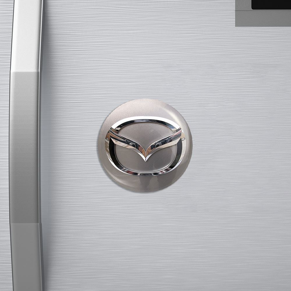 مگنت مزدا mazda خندالو با روکش سلفون مات مخملی ضدخش و قطعه پشتی فلزی تولید شده است که آهنربای اتمی بکار برده شده در محصول، بصورت مخفی تعبیه شده ودیده نمی شود. ضمن اینکه گیرایی بسیار بالایی داشته و به هیچ عنوان از روی یخچال نمی افتد.