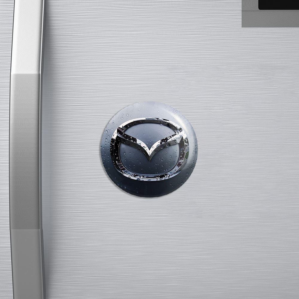 مگنت مزدا mazda خندالو با روکش سلفون مات مخملی ضدخش و قطعه پشتی فلزی تولید شده است که آهنربای اتمی بکار برده شده در محصول، بصورت مخفی تعبیه شده ودیده نمی شود. ضمن اینکه گیرایی بسیار بالایی داشته و به هیچ عنوان از روی یخچال نمی افتد.