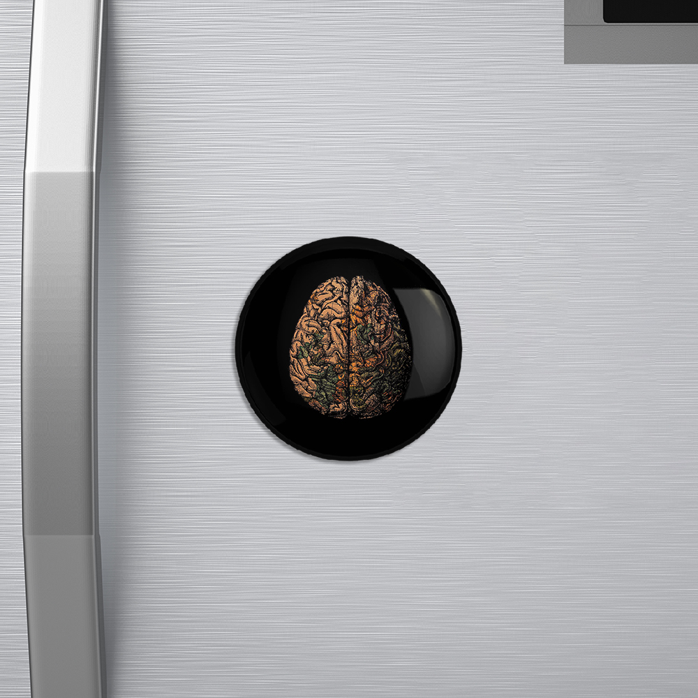مگنت مغز Brain خندالو با روکش سلفون مات مخملی ضدخش و قطعه پشتی فلزی تولید شده است که آهنربای اتمی بکار برده شده در محصول، بصورت مخفی تعبیه شده ودیده نمی شود. ضمن اینکه گیرایی بسیار بالایی داشته و به هیچ عنوان از روی یخچال نمی افتد.