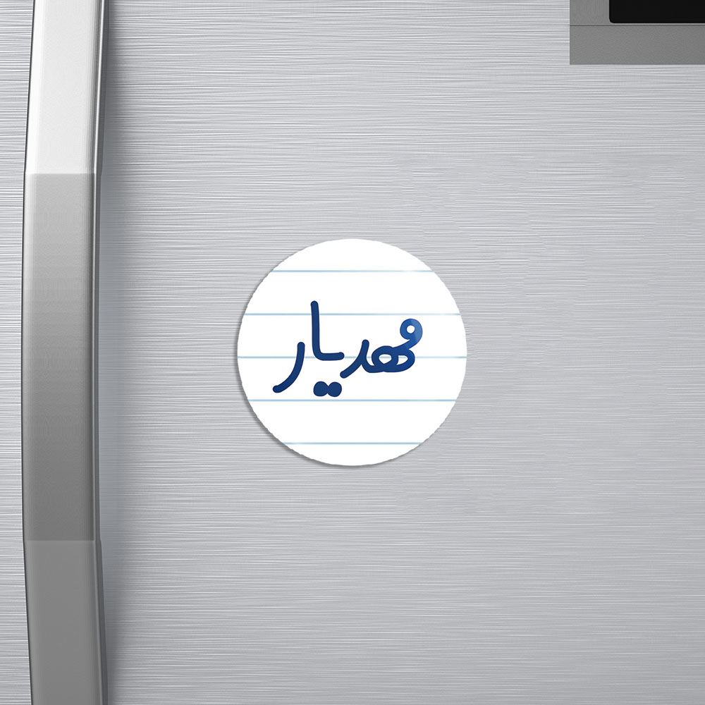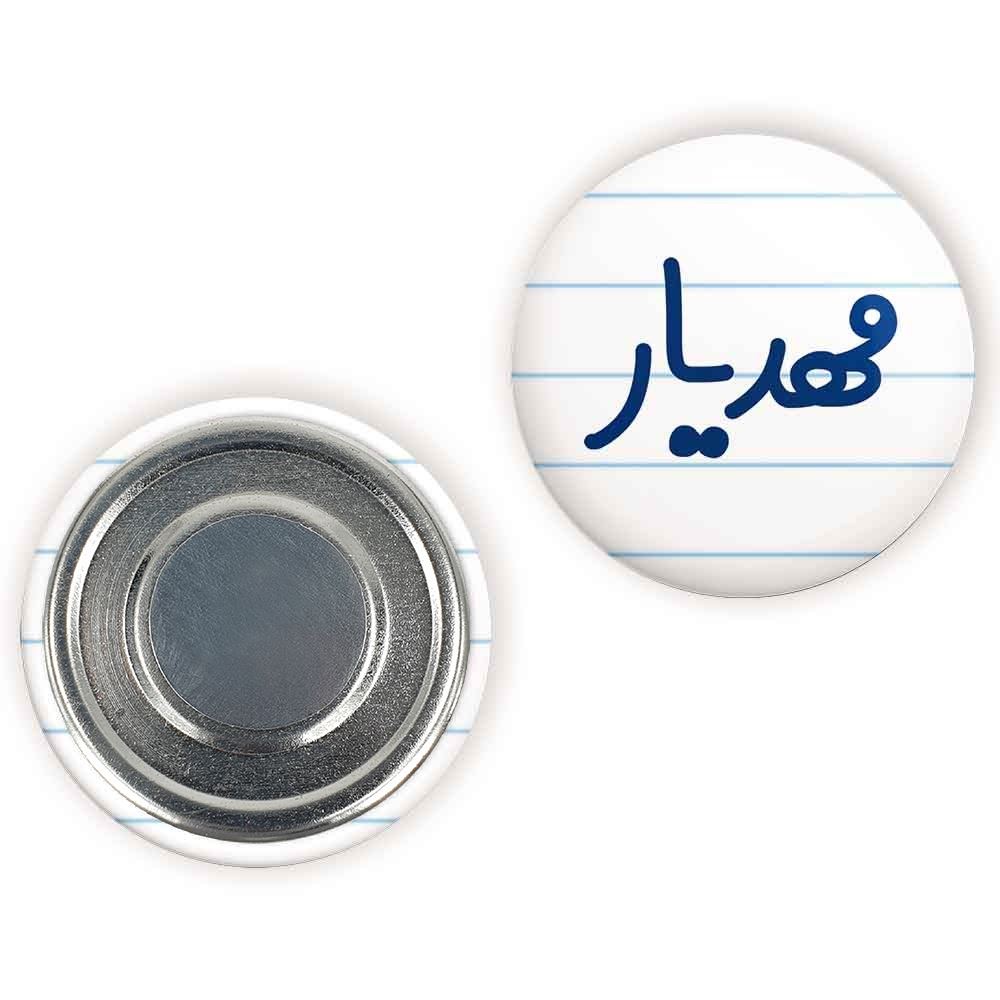 مگنت مهدیار خندالو با روکش سلفون مات مخملی ضدخش و قطعه پشتی فلزی تولید شده است که آهنربای اتمی بکار برده شده در محصول، بصورت مخفی تعبیه شده ودیده نمی شود. ضمن اینکه گیرایی بسیار بالایی داشته و به هیچ عنوان از روی یخچال نمی افتد.