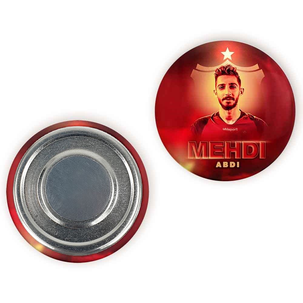 مگنت مهدی عبدی پرسپولیس خندالو با روکش سلفون مات مخملی ضدخش و قطعه پشتی فلزی تولید شده است که آهنربای اتمی بکار برده شده در محصول، بصورت مخفی تعبیه شده ودیده نمی شود. ضمن اینکه گیرایی بسیار بالایی داشته و به هیچ عنوان از روی یخچال نمی افتد.