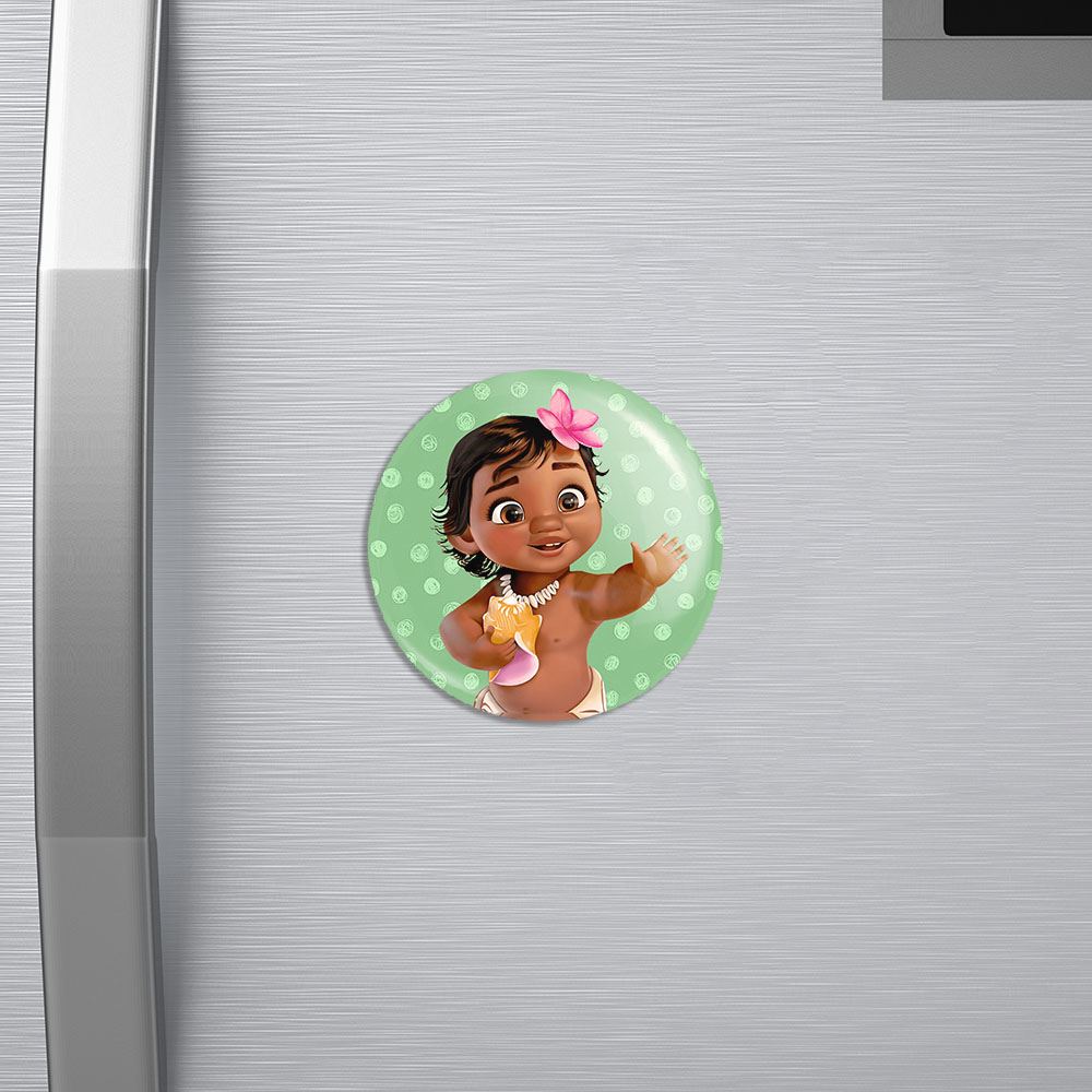 مگنت موآنا Moana خندالو با روکش سلفون مات مخملی ضدخش و قطعه پشتی فلزی تولید شده است که آهنربای اتمی بکار برده شده در محصول، بصورت مخفی تعبیه شده ودیده نمی شود. ضمن اینکه گیرایی بسیار بالایی داشته و به هیچ عنوان از روی یخچال نمی افتد.