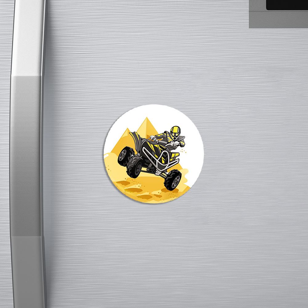مگنت موتور چهار چرخ خندالو با روکش سلفون مات مخملی ضدخش و قطعه پشتی فلزی تولید شده است که آهنربای اتمی بکار برده شده در محصول، بصورت مخفی تعبیه شده ودیده نمی شود. ضمن اینکه گیرایی بسیار بالایی داشته و به هیچ عنوان از روی یخچال نمی افتد. نکته مهم این است که به دلیل مخفی بودن آهنربا، هیچگونه خط و خش و زدگی بر روی یخچال ایجاد نخواهد شد. چاپ مگنت یخچال موتور چهار چرخ نیز با دستگاه های استاندارد و با بهترین سطح کیفیت صورت گرفته و طرح با شفافیتی مثال زدنی و با سلفون چسبی تولید شده است که باعث شده محصول نهایی بدون شکست نور دیده شود. همچنین بسته بندی جذاب و مینیمال مگنت های یخچالی، آنها را مناسب هدیه کرده است. مگنت موتور چهار چرخ خندالو علاوه بر روی یخچال بر هر سطح فلزی دیگری مثل لولای در اتاق، کمد های آهنی و … نیز قابل نصب است.