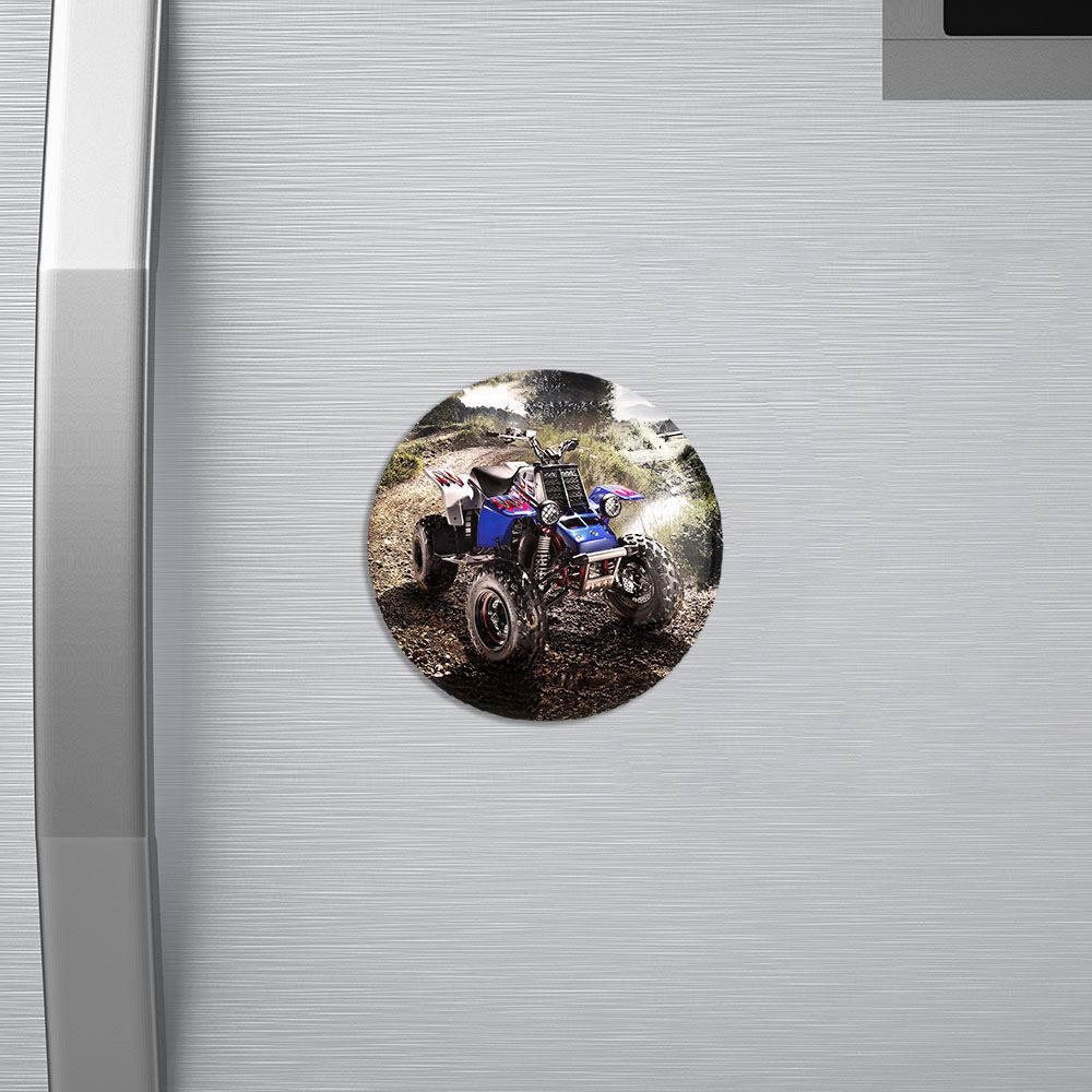 مگنت موتور چهار چرخ خندالو با روکش سلفون مات مخملی ضدخش و قطعه پشتی فلزی تولید شده است که آهنربای اتمی بکار برده شده در محصول، بصورت مخفی تعبیه شده ودیده نمی شود. ضمن اینکه گیرایی بسیار بالایی داشته و به هیچ عنوان از روی یخچال نمی افتد.