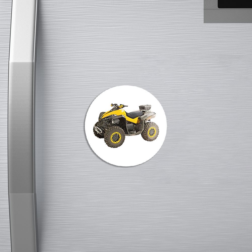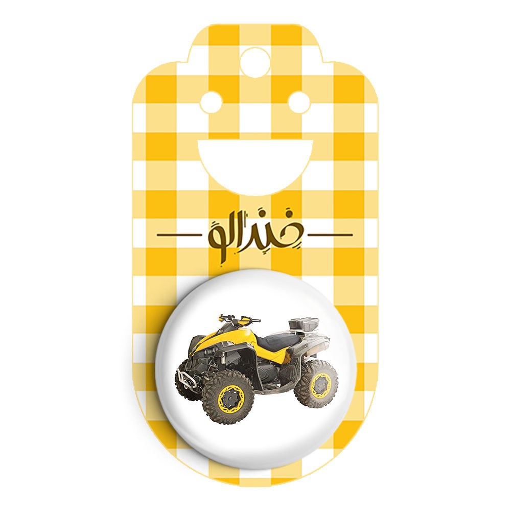 مگنت موتور چهار چرخ خندالو با روکش سلفون مات مخملی ضدخش و قطعه پشتی فلزی تولید شده است که آهنربای اتمی بکار برده شده در محصول، بصورت مخفی تعبیه شده ودیده نمی شود. ضمن اینکه گیرایی بسیار بالایی داشته و به هیچ عنوان از روی یخچال نمی افتد.
