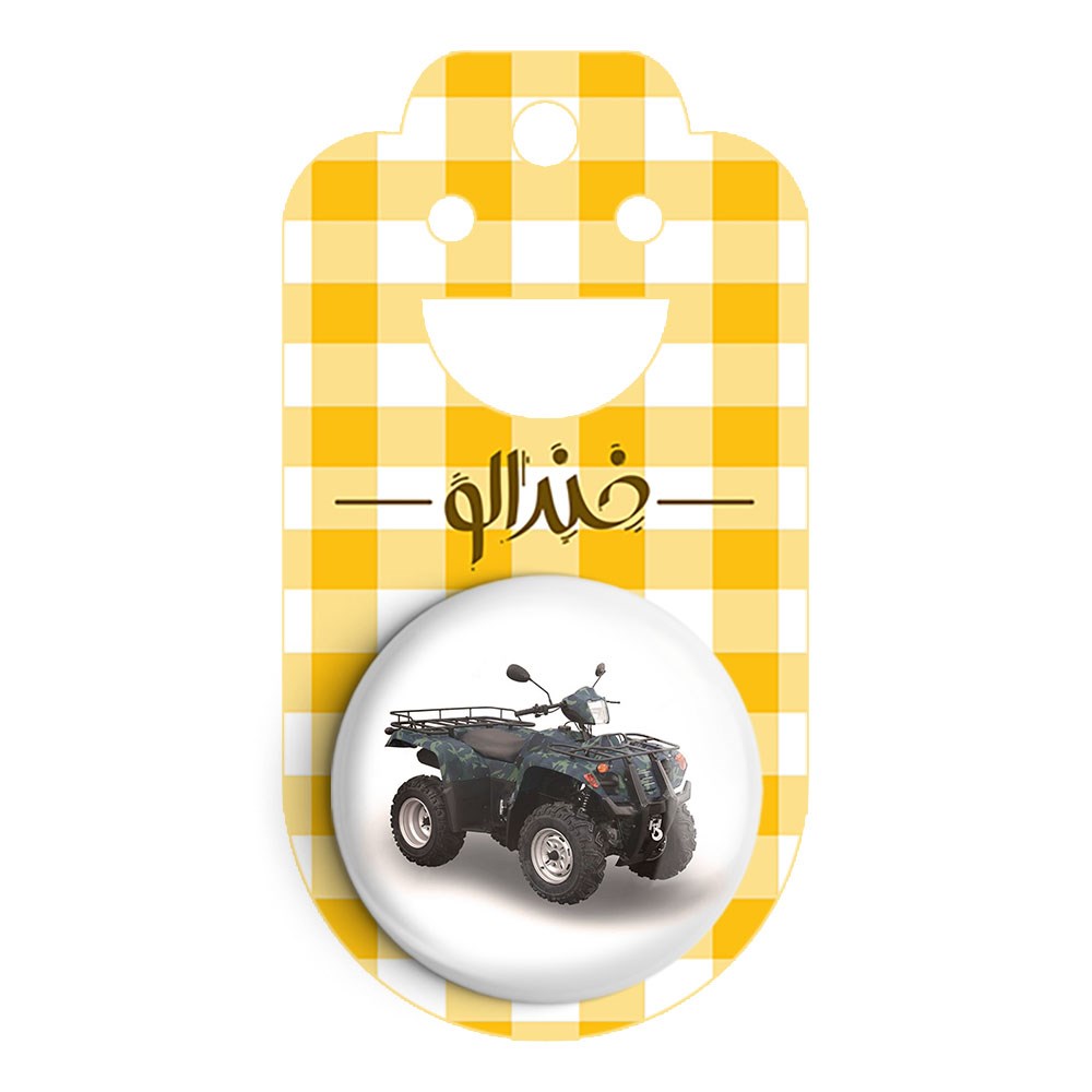 مگنت موتور چهار چرخ خندالو با روکش سلفون مات مخملی ضدخش و قطعه پشتی فلزی تولید شده است که آهنربای اتمی بکار برده شده در محصول، بصورت مخفی تعبیه شده ودیده نمی شود. ضمن اینکه گیرایی بسیار بالایی داشته و به هیچ عنوان از روی یخچال نمی افتد.