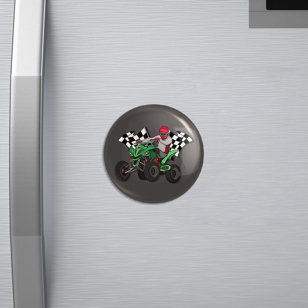 مگنت موتور چهار چرخ خندالو با روکش سلفون مات مخملی ضدخش و قطعه پشتی فلزی تولید شده است که آهنربای اتمی بکار برده شده در محصول، بصورت مخفی تعبیه شده ودیده نمی شود. ضمن اینکه گیرایی بسیار بالایی داشته و به هیچ عنوان از روی یخچال نمی افتد.