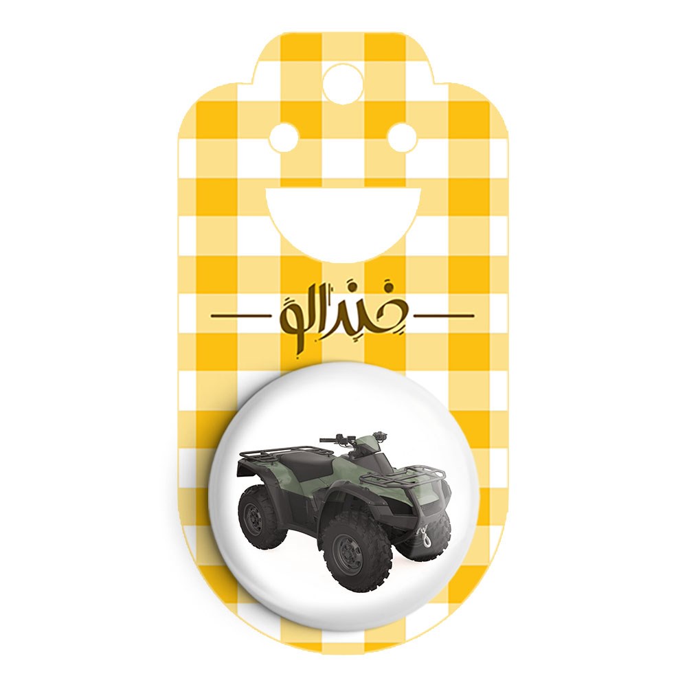 مگنت موتور چهار چرخ خندالو با روکش سلفون مات مخملی ضدخش و قطعه پشتی فلزی تولید شده است که آهنربای اتمی بکار برده شده در محصول، بصورت مخفی تعبیه شده ودیده نمی شود. ضمن اینکه گیرایی بسیار بالایی داشته و به هیچ عنوان از روی یخچال نمی افتد.