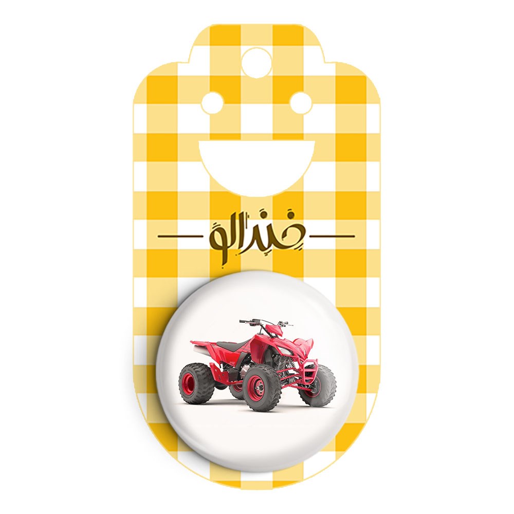 مگنت موتور چهار چرخ خندالو با روکش سلفون مات مخملی ضدخش و قطعه پشتی فلزی تولید شده است که آهنربای اتمی بکار برده شده در محصول، بصورت مخفی تعبیه شده ودیده نمی شود. ضمن اینکه گیرایی بسیار بالایی داشته و به هیچ عنوان از روی یخچال نمی افتد.