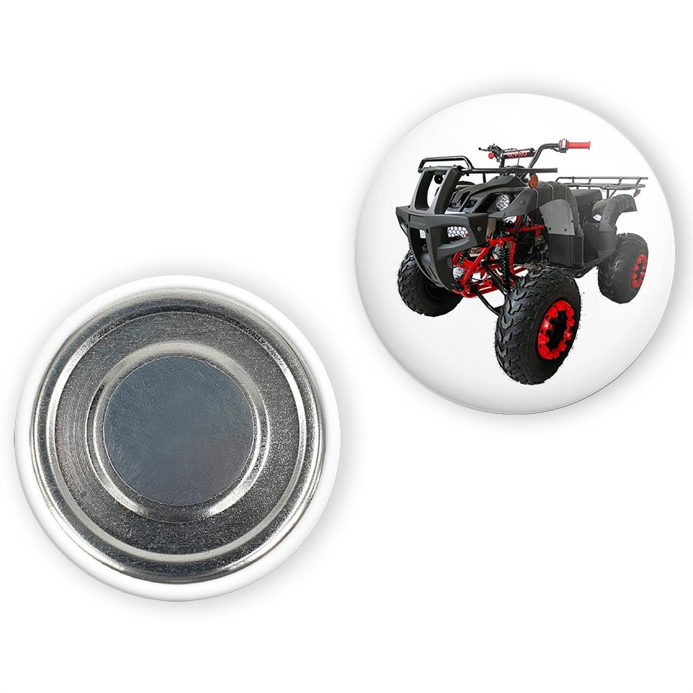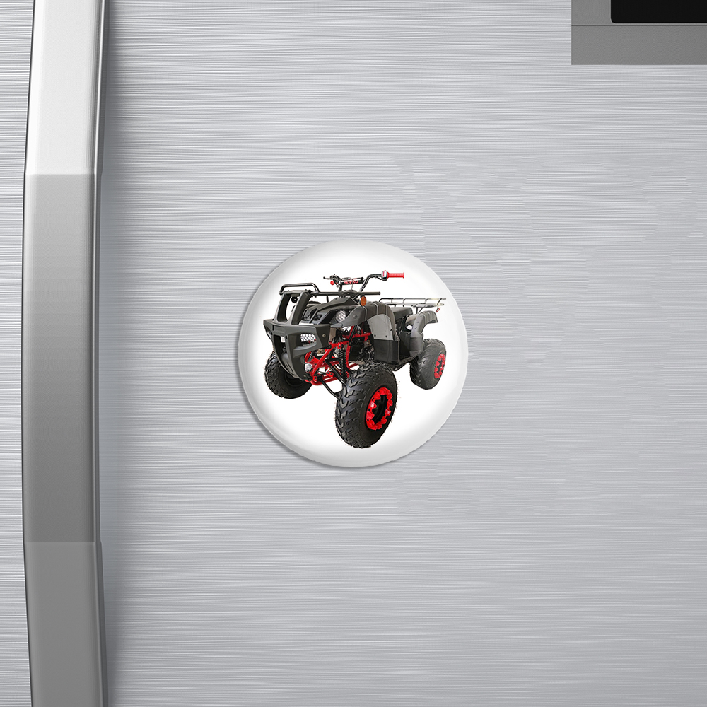 مگنت موتور چهار چرخ خندالو با روکش سلفون مات مخملی ضدخش و قطعه پشتی فلزی تولید شده است که آهنربای اتمی بکار برده شده در محصول، بصورت مخفی تعبیه شده ودیده نمی شود. ضمن اینکه گیرایی بسیار بالایی داشته و به هیچ عنوان از روی یخچال نمی افتد.