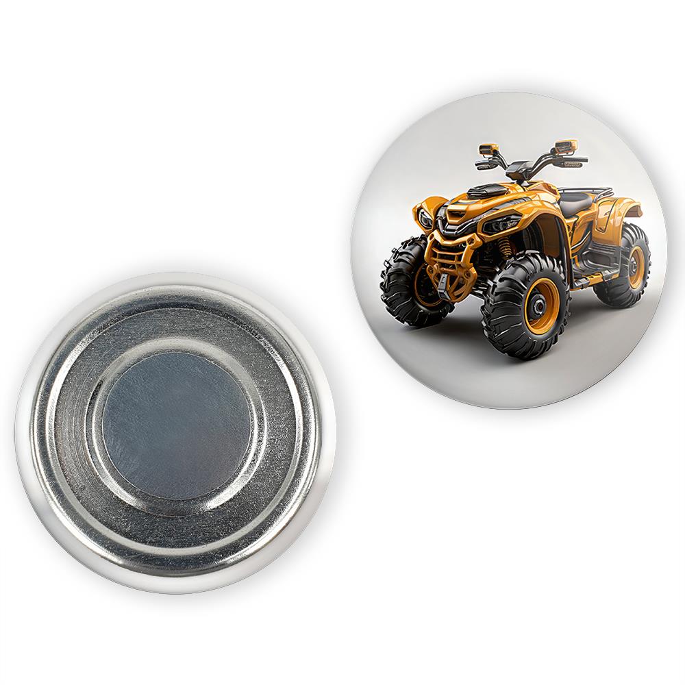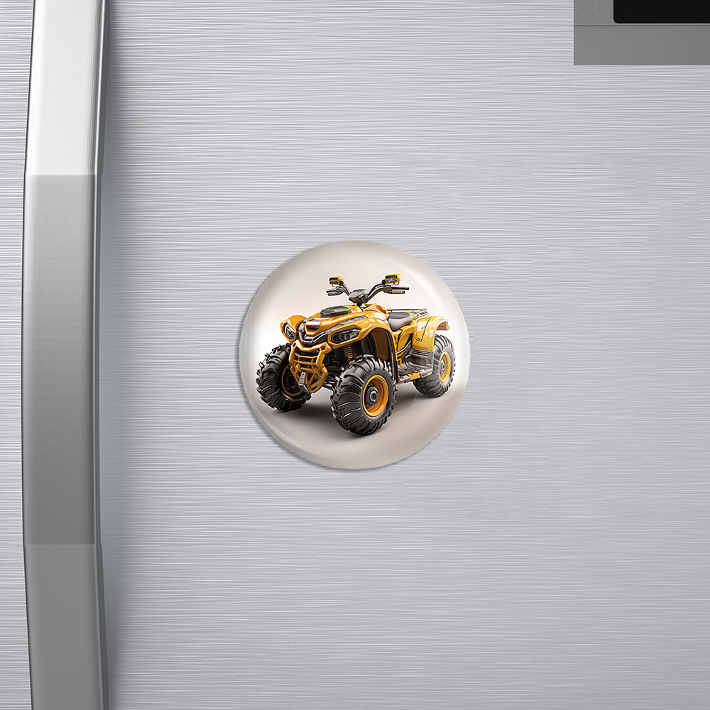 مگنت موتور چهار چرخ خندالو با روکش سلفون مات مخملی ضدخش و قطعه پشتی فلزی تولید شده است که آهنربای اتمی بکار برده شده در محصول، بصورت مخفی تعبیه شده ودیده نمی شود. ضمن اینکه گیرایی بسیار بالایی داشته و به هیچ عنوان از روی یخچال نمی افتد.