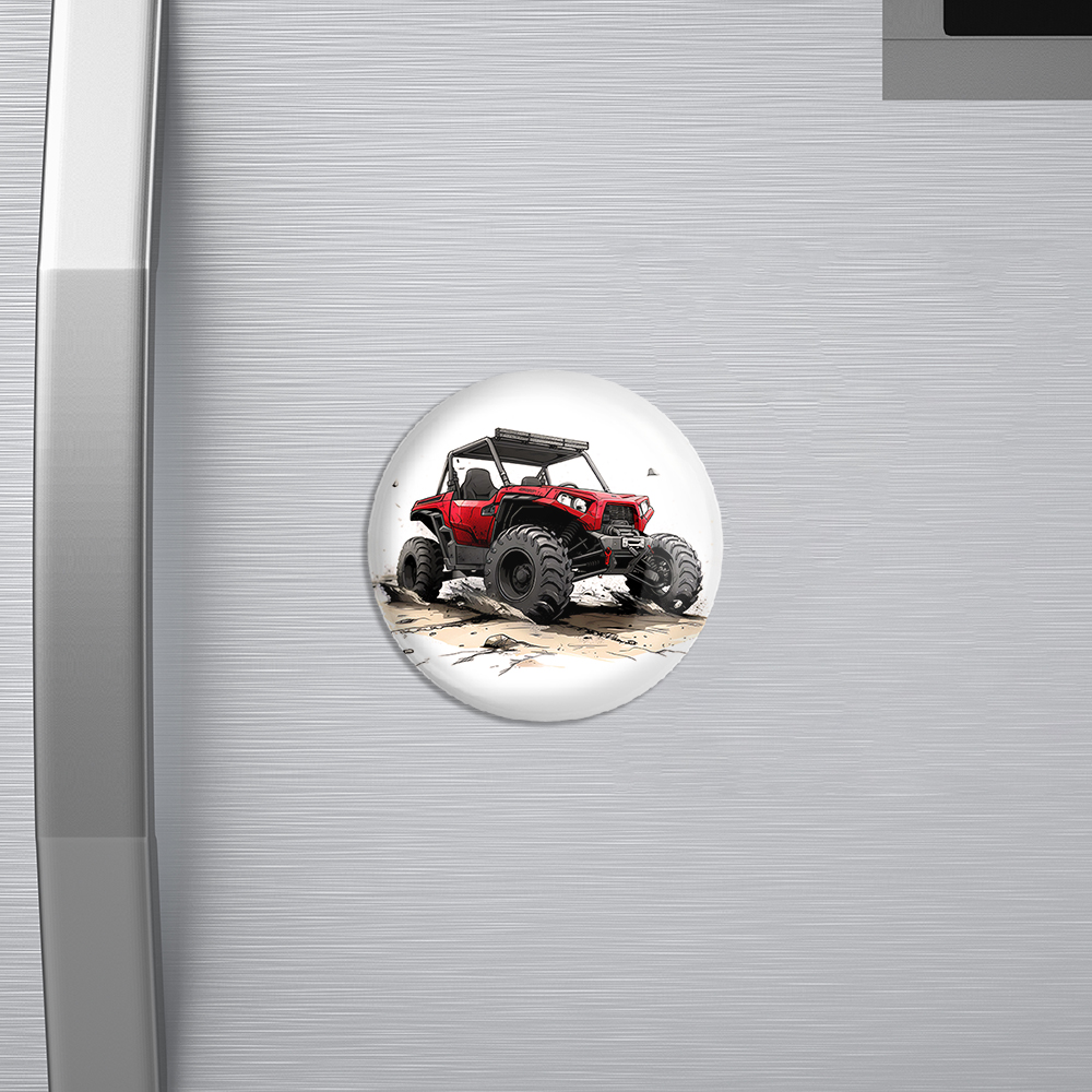 مگنت موتور چهار چرخ خندالو با روکش سلفون مات مخملی ضدخش و قطعه پشتی فلزی تولید شده است که آهنربای اتمی بکار برده شده در محصول، بصورت مخفی تعبیه شده ودیده نمی شود. ضمن اینکه گیرایی بسیار بالایی داشته و به هیچ عنوان از روی یخچال نمی افتد.
