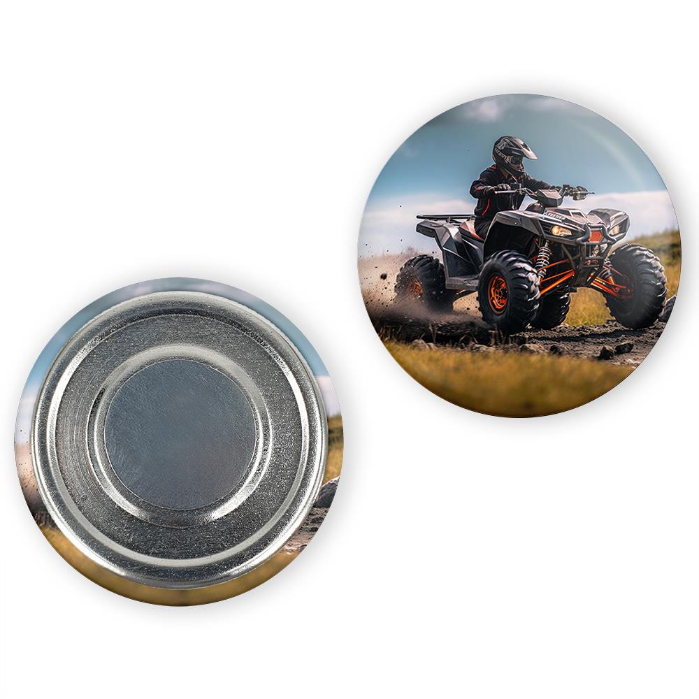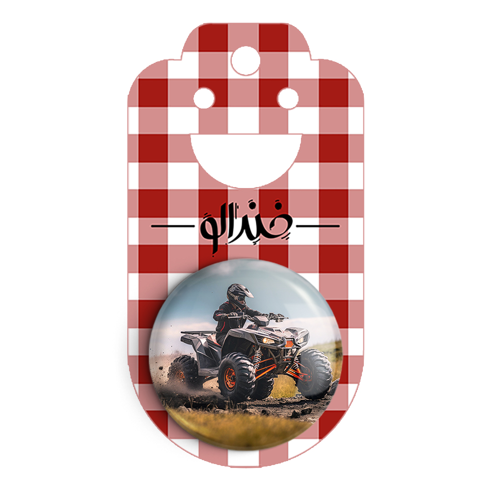 مگنت موتور چهار چرخ خندالو با روکش سلفون مات مخملی ضدخش و قطعه پشتی فلزی تولید شده است که آهنربای اتمی بکار برده شده در محصول، بصورت مخفی تعبیه شده ودیده نمی شود. ضمن اینکه گیرایی بسیار بالایی داشته و به هیچ عنوان از روی یخچال نمی افتد.