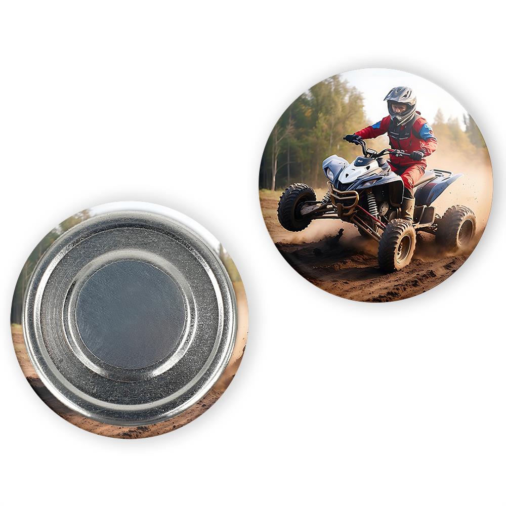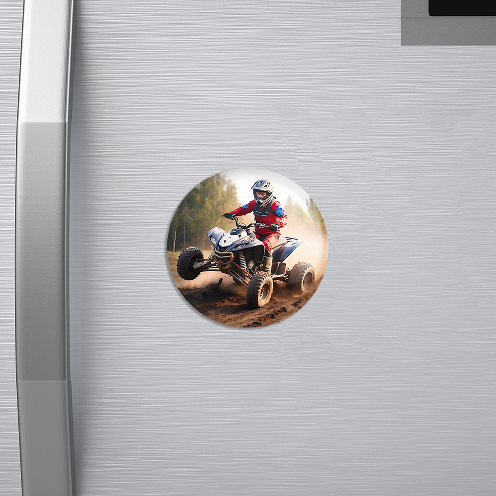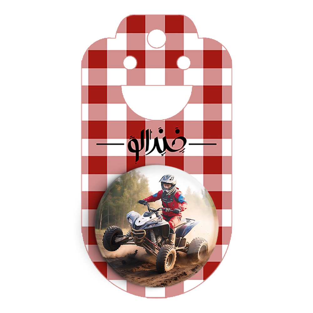 مگنت موتور چهار چرخ خندالو با روکش سلفون مات مخملی ضدخش و قطعه پشتی فلزی تولید شده است که آهنربای اتمی بکار برده شده در محصول، بصورت مخفی تعبیه شده ودیده نمی شود. ضمن اینکه گیرایی بسیار بالایی داشته و به هیچ عنوان از روی یخچال نمی افتد.