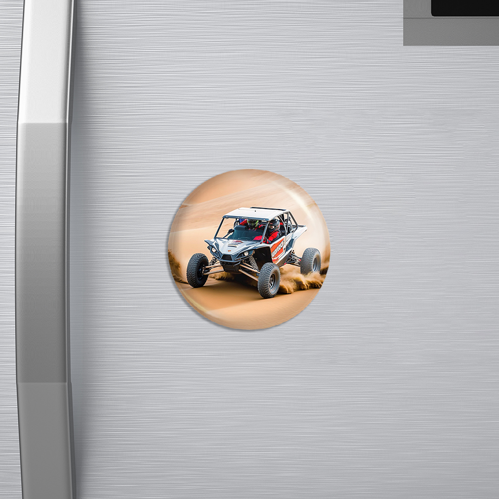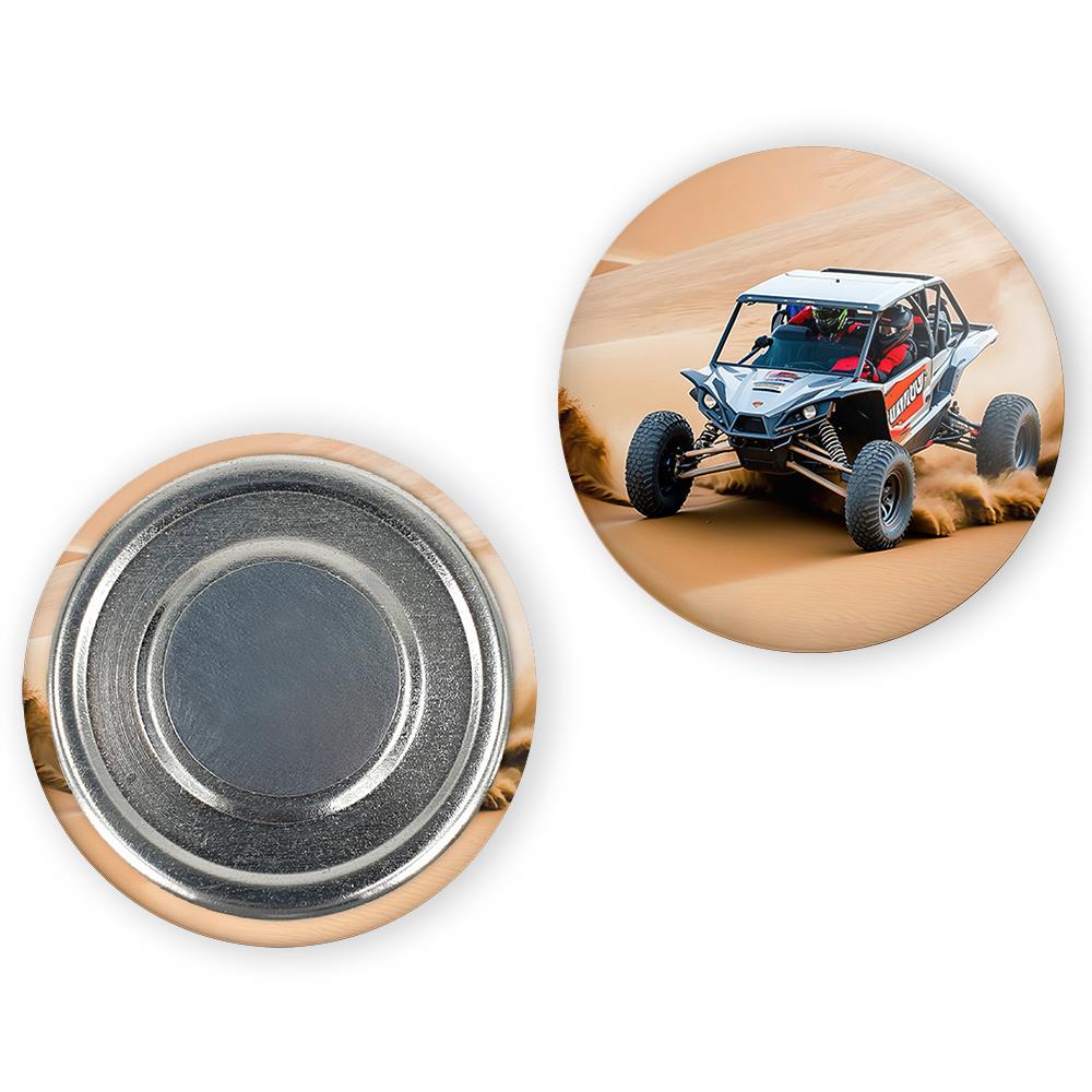 مگنت موتور چهار چرخ خندالو با روکش سلفون مات مخملی ضدخش و قطعه پشتی فلزی تولید شده است که آهنربای اتمی بکار برده شده در محصول، بصورت مخفی تعبیه شده ودیده نمی شود. ضمن اینکه گیرایی بسیار بالایی داشته و به هیچ عنوان از روی یخچال نمی افتد.
