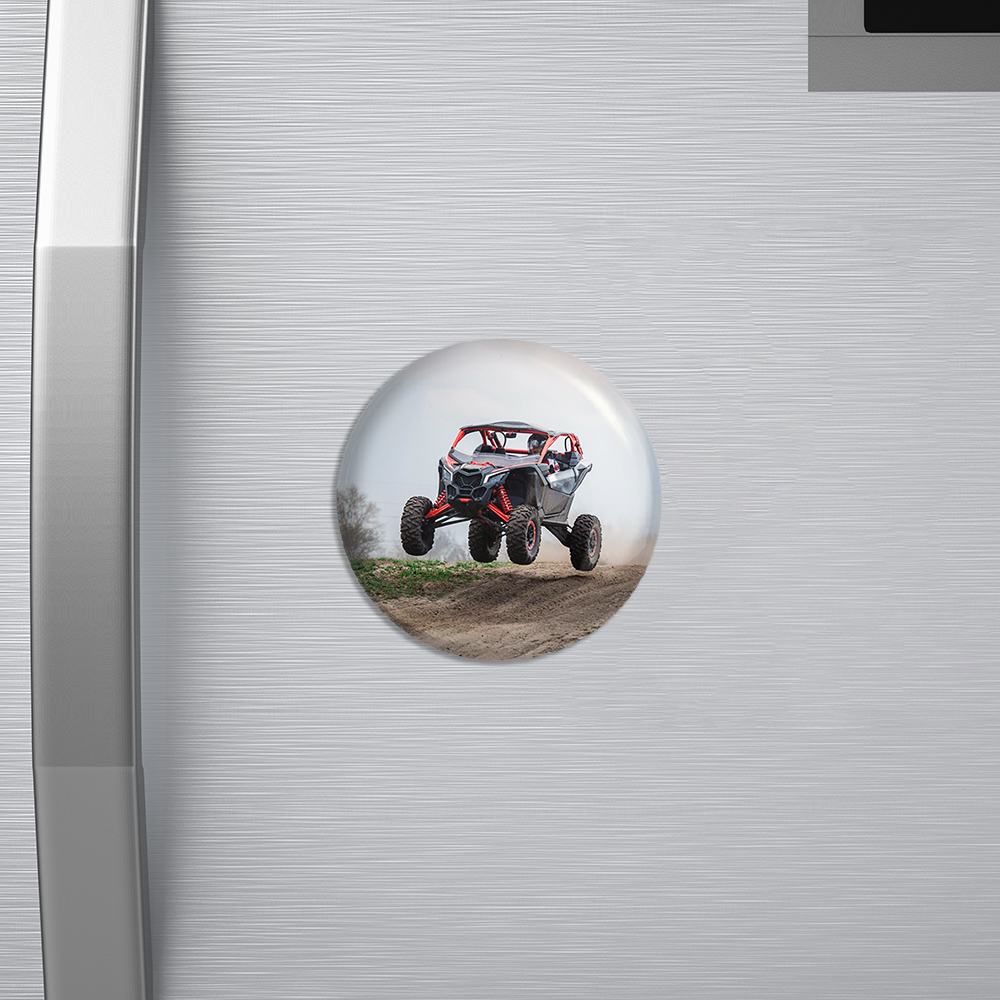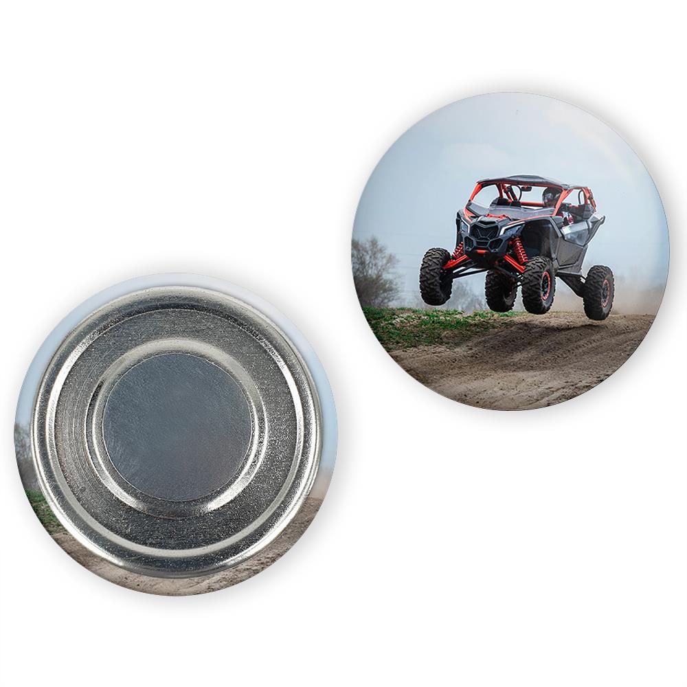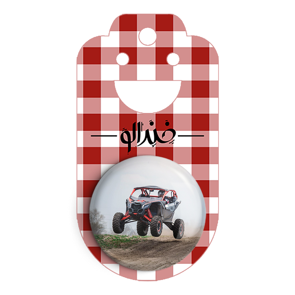 مگنت موتور چهار چرخ خندالو با روکش سلفون مات مخملی ضدخش و قطعه پشتی فلزی تولید شده است که آهنربای اتمی بکار برده شده در محصول، بصورت مخفی تعبیه شده ودیده نمی شود. ضمن اینکه گیرایی بسیار بالایی داشته و به هیچ عنوان از روی یخچال نمی افتد.