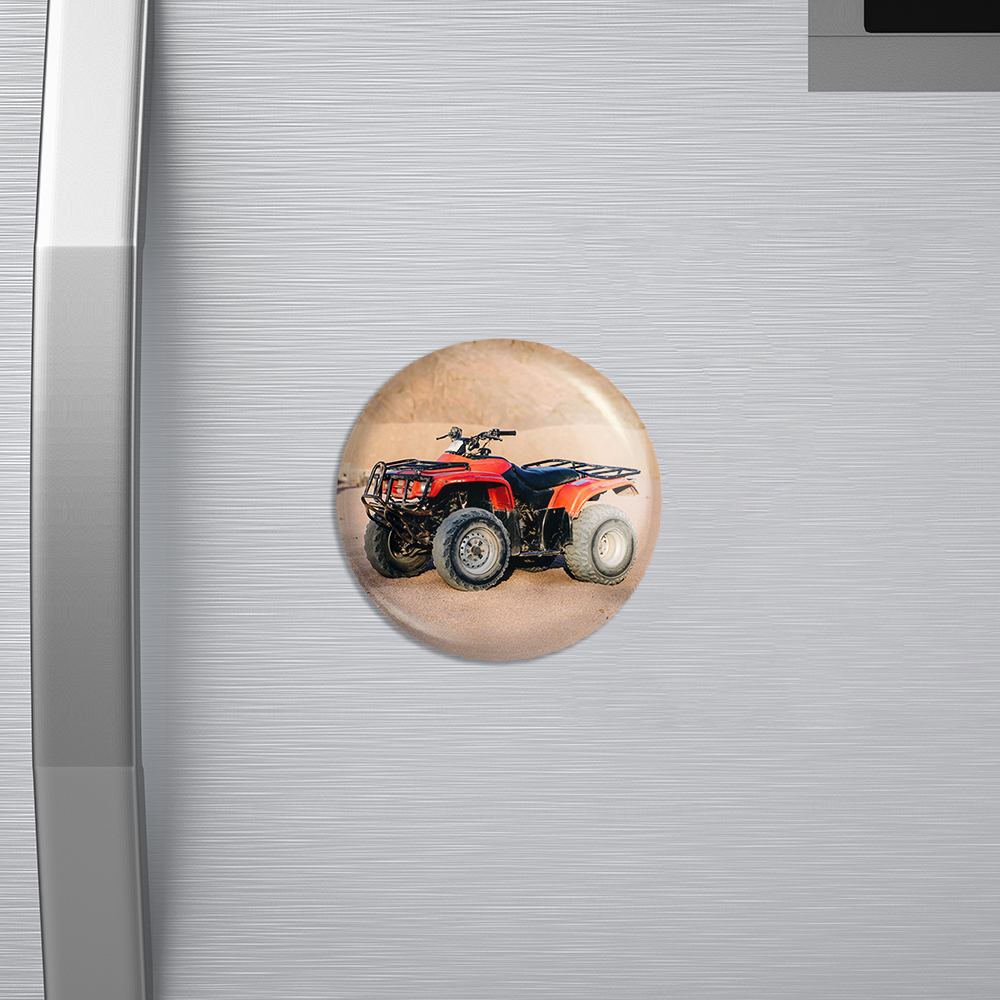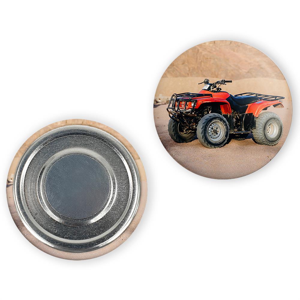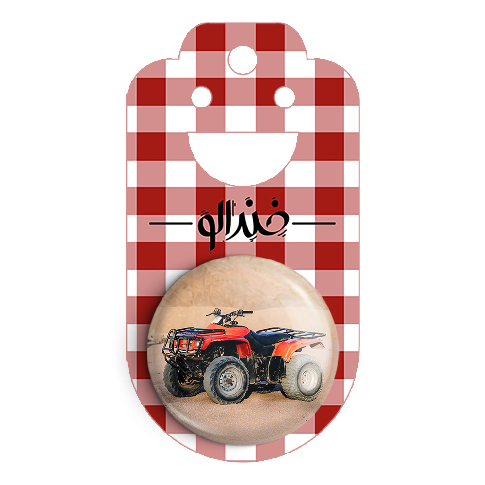 مگنت موتور چهار چرخ خندالو با روکش سلفون مات مخملی ضدخش و قطعه پشتی فلزی تولید شده است که آهنربای اتمی بکار برده شده در محصول، بصورت مخفی تعبیه شده ودیده نمی شود. ضمن اینکه گیرایی بسیار بالایی داشته و به هیچ عنوان از روی یخچال نمی افتد.