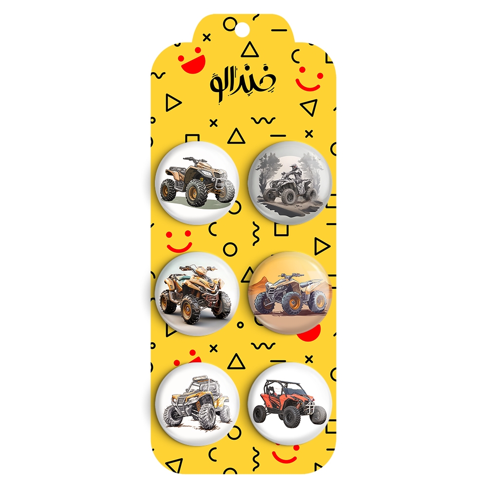 پک 6 عددی مگنت یخچال خندالو طرح موتور چهار چرخ با روکش سلفون مات حرارتی مخملی ضدخش و قطعه پشتی فلزی تولید شده است که آهنربای اتمی بکار برده شده در محصول، بصورت مخفی تعبیه شده ودیده نمی شود. ضمن اینکه گیرایی بسیار بالایی داشته و به هیچ عنوان از روی یخچال نمی افتد. نکته مهم این است که به دلیل مخفی بودن آهنربا، هیچگونه خط و خش و زدگی بر روی یخچال ایجاد نخواهد شد.