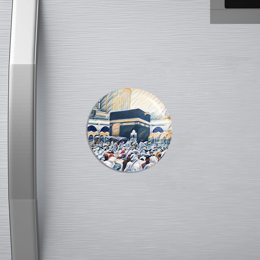 مگنت مکه خندالو با روکش سلفون مات مخملی ضدخش و قطعه پشتی فلزی تولید شده است که آهنربای اتمی بکار برده شده در محصول، بصورت مخفی تعبیه شده ودیده نمی شود. ضمن اینکه گیرایی بسیار بالایی داشته و به هیچ عنوان از روی یخچال نمی افتد.