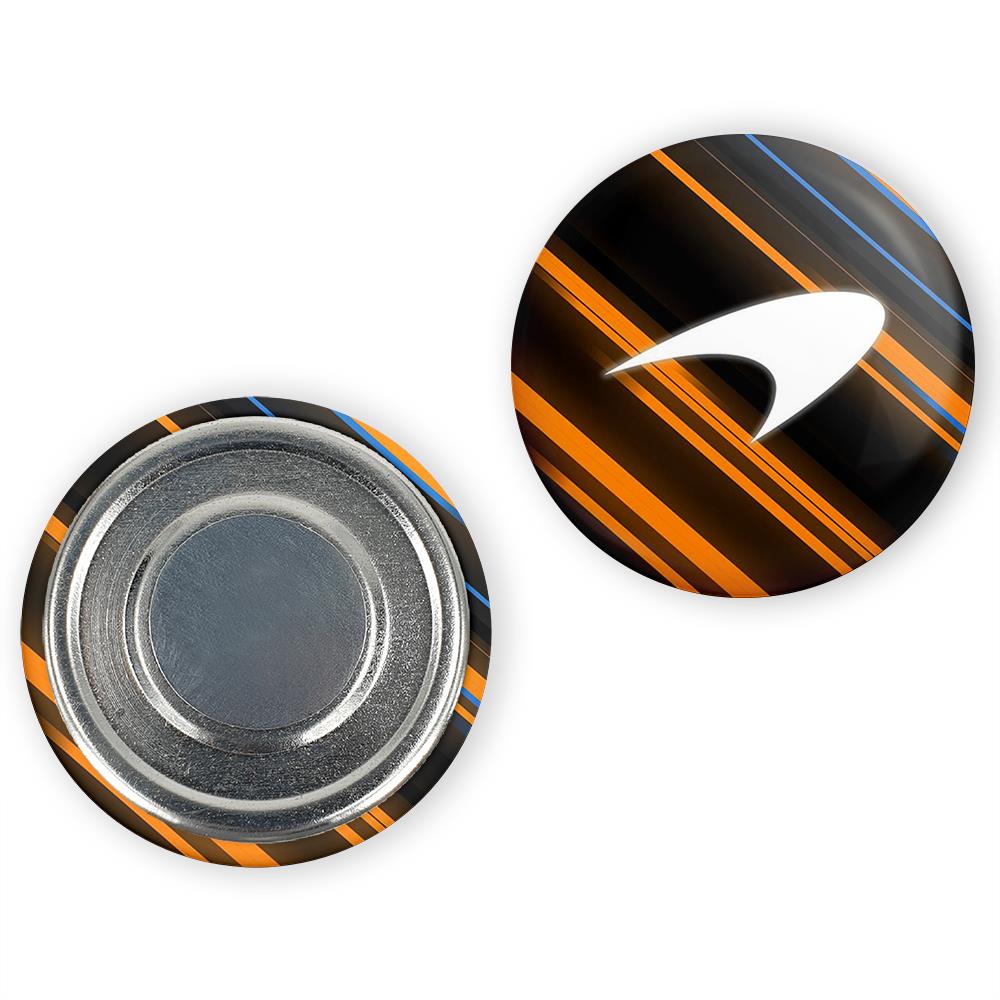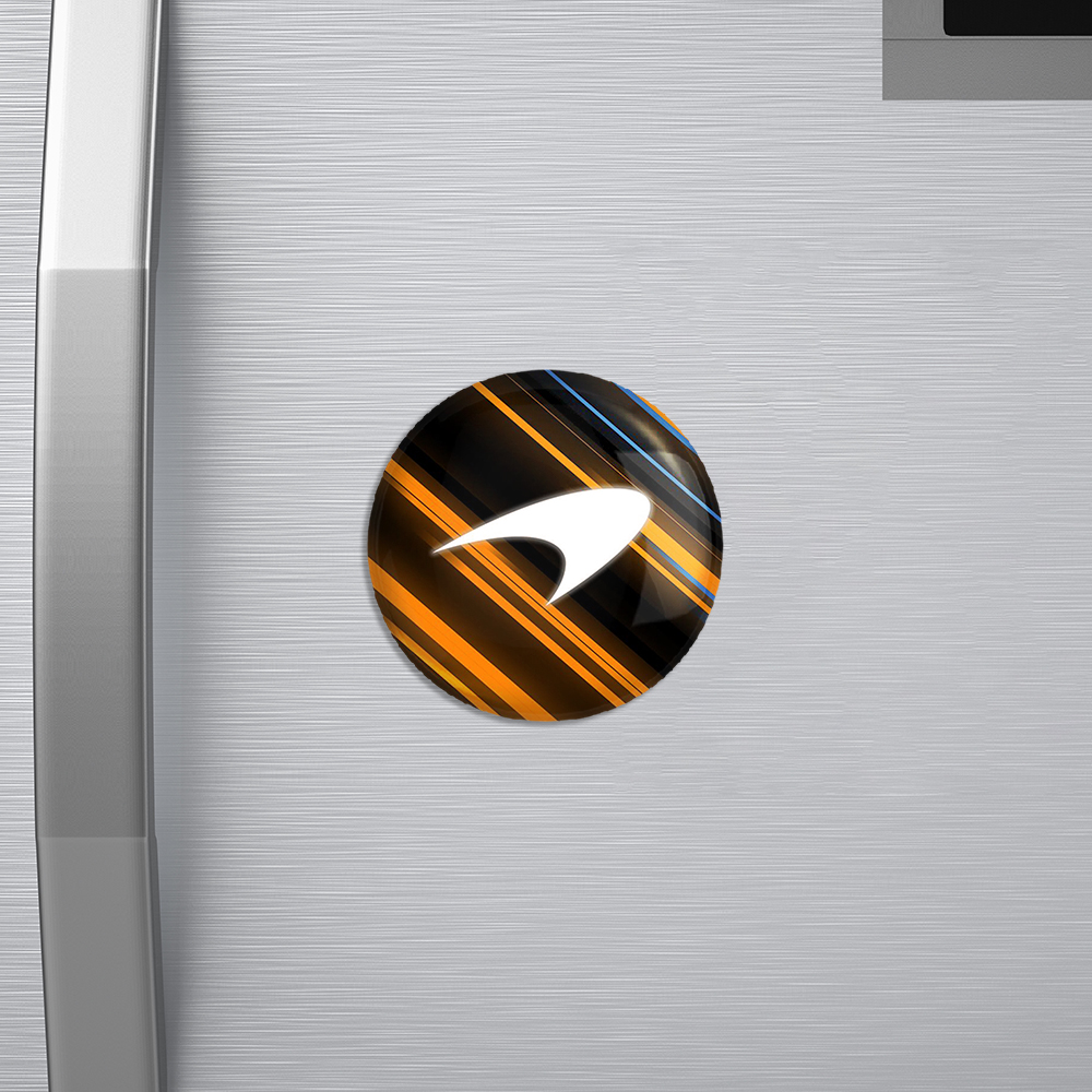 مگنت مک لارن Mclaren خندالو با روکش سلفون مات مخملی ضدخش و قطعه پشتی فلزی تولید شده است که آهنربای اتمی بکار برده شده در محصول، بصورت مخفی تعبیه شده ودیده نمی شود. ضمن اینکه گیرایی بسیار بالایی داشته و به هیچ عنوان از روی یخچال نمی افتد.