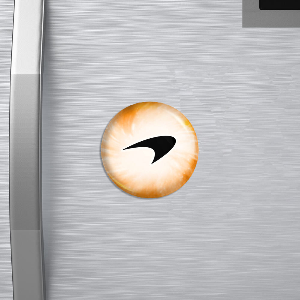 مگنت مک لارن Mclaren خندالو با روکش سلفون مات مخملی ضدخش و قطعه پشتی فلزی تولید شده است که آهنربای اتمی بکار برده شده در محصول، بصورت مخفی تعبیه شده ودیده نمی شود. ضمن اینکه گیرایی بسیار بالایی داشته و به هیچ عنوان از روی یخچال نمی افتد.