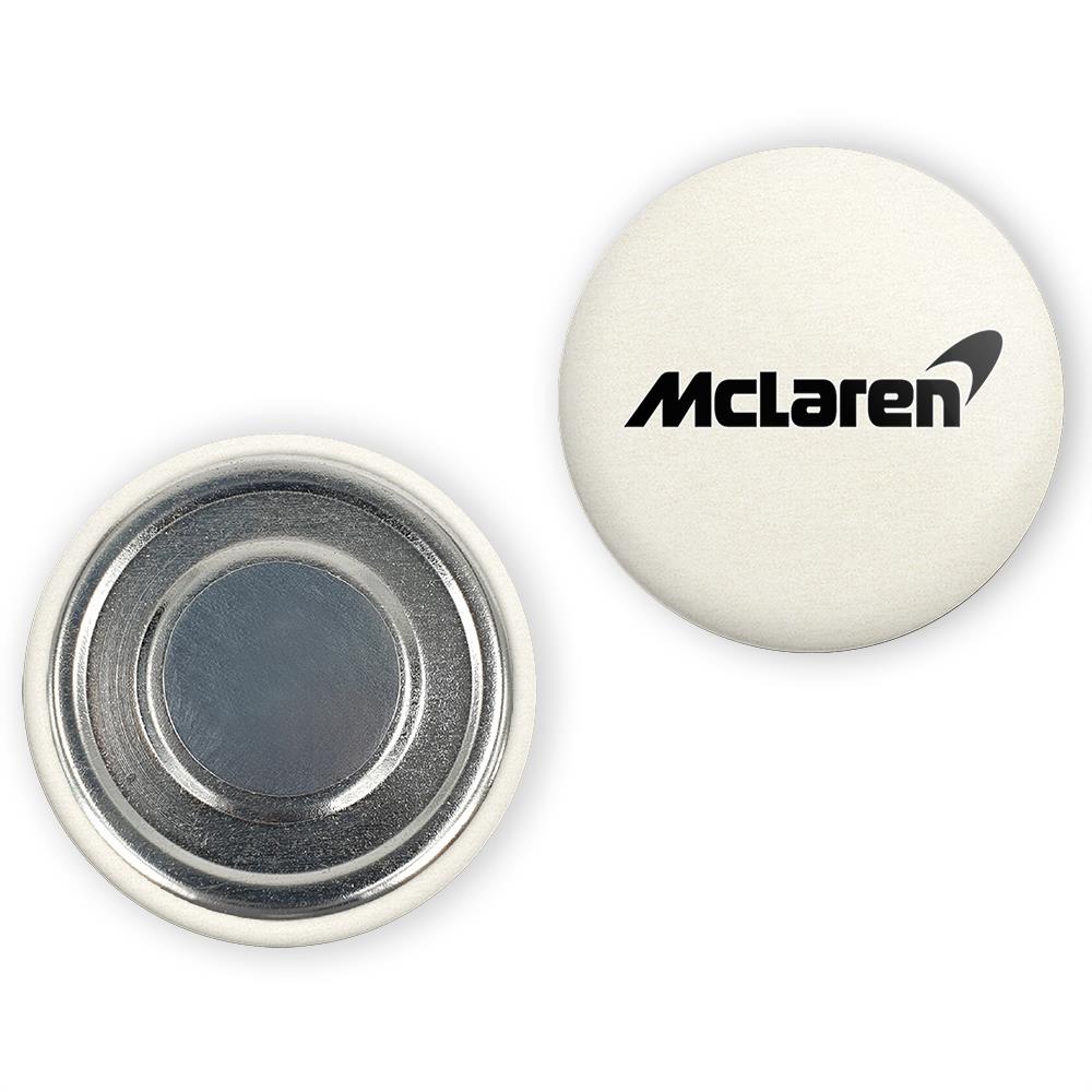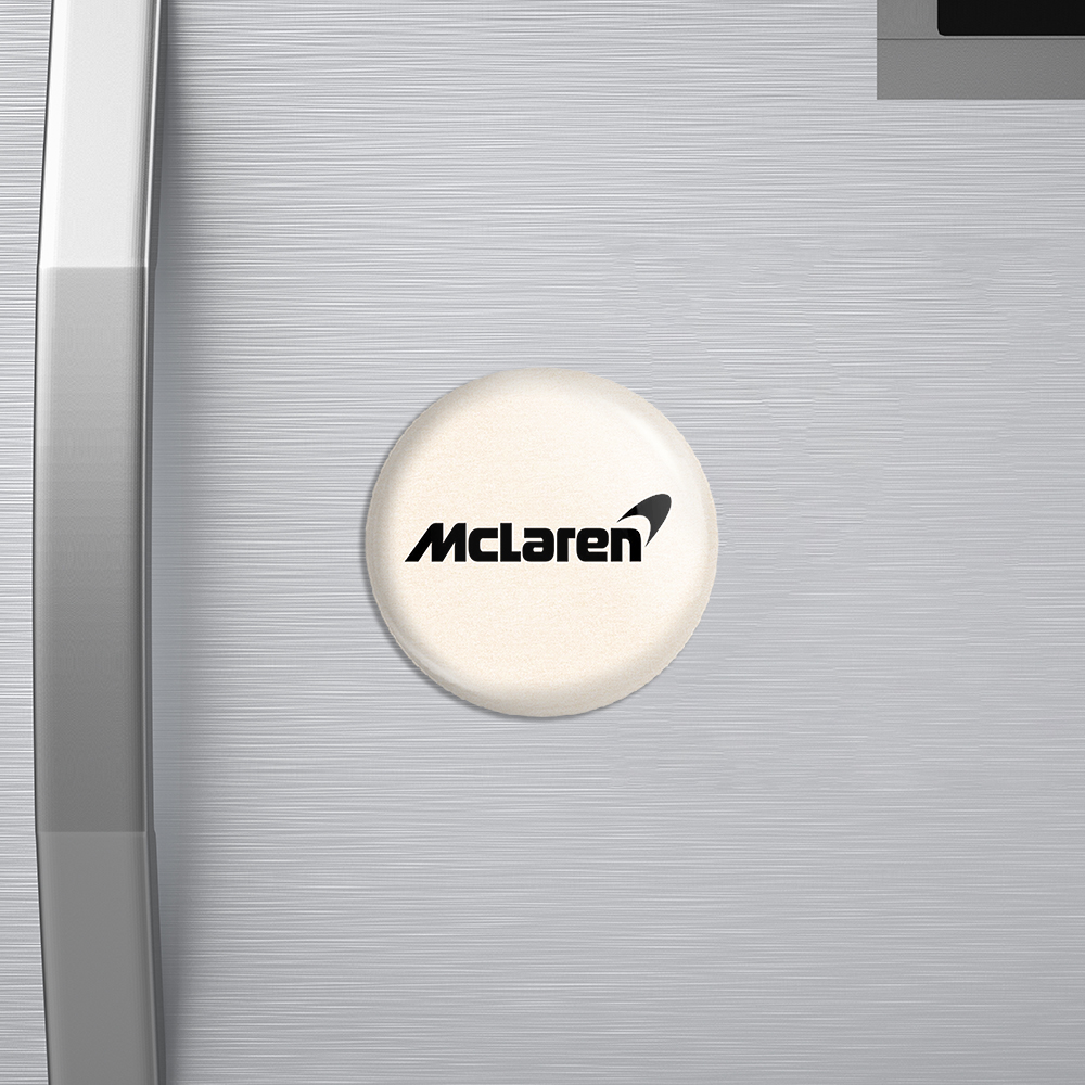 مگنت مک لارن Mclaren خندالو با روکش سلفون مات مخملی ضدخش و قطعه پشتی فلزی تولید شده است که آهنربای اتمی بکار برده شده در محصول، بصورت مخفی تعبیه شده ودیده نمی شود. ضمن اینکه گیرایی بسیار بالایی داشته و به هیچ عنوان از روی یخچال نمی افتد.