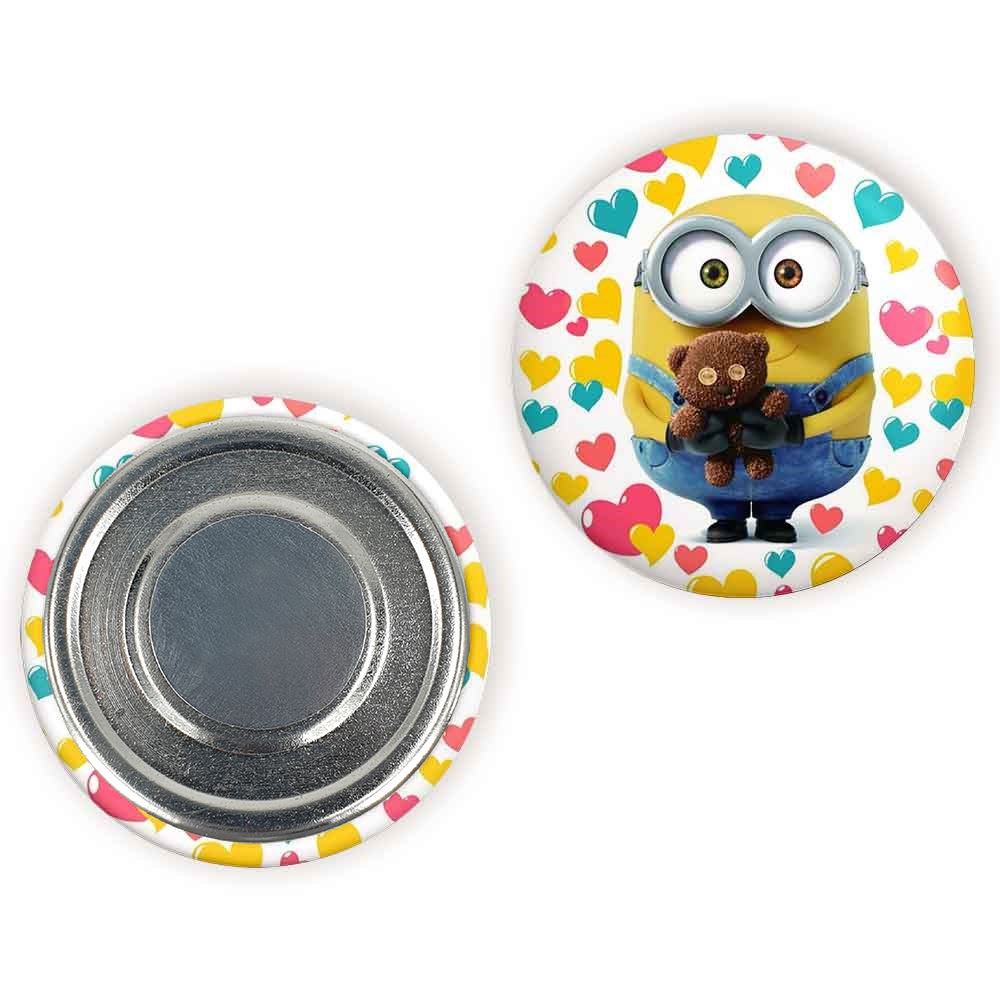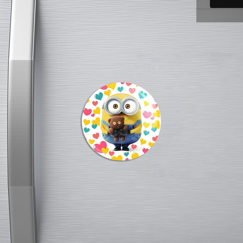 مگنت مینیون Minions خندالو با روکش سلفون مات مخملی ضدخش و قطعه پشتی فلزی تولید شده است که آهنربای اتمی بکار برده شده در محصول، بصورت مخفی تعبیه شده ودیده نمی شود. ضمن اینکه گیرایی بسیار بالایی داشته و به هیچ عنوان از روی یخچال نمی افتد.