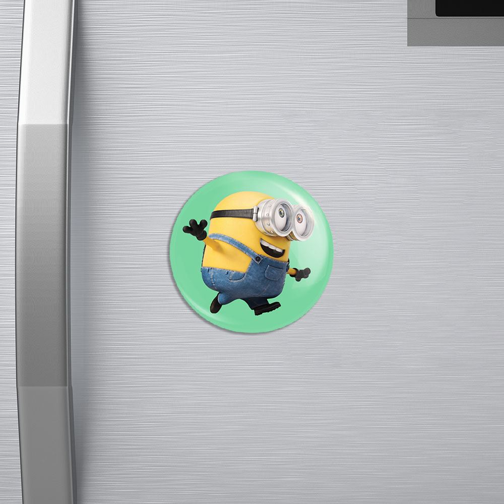 مگنت مینیون Minions خندالو با روکش سلفون مات مخملی ضدخش و قطعه پشتی فلزی تولید شده است که آهنربای اتمی بکار برده شده در محصول، بصورت مخفی تعبیه شده ودیده نمی شود. ضمن اینکه گیرایی بسیار بالایی داشته و به هیچ عنوان از روی یخچال نمی افتد.