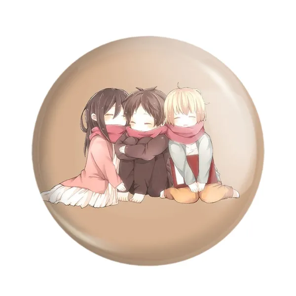 مگنت میکاسا و ارن و ارمین انیمه اتک آن تایتان Attack on Titan خندالو با روکش سلفون مات مخملی ضدخش و قطعه پشتی فلزی تولید شده است که آهنربای اتمی بکار برده شده در محصول، بصورت مخفی تعبیه شده ودیده نمی شود. ضمن اینکه گیرایی بسیار بالایی داشته و به هیچ عنوان از روی یخچال نمی افتد.