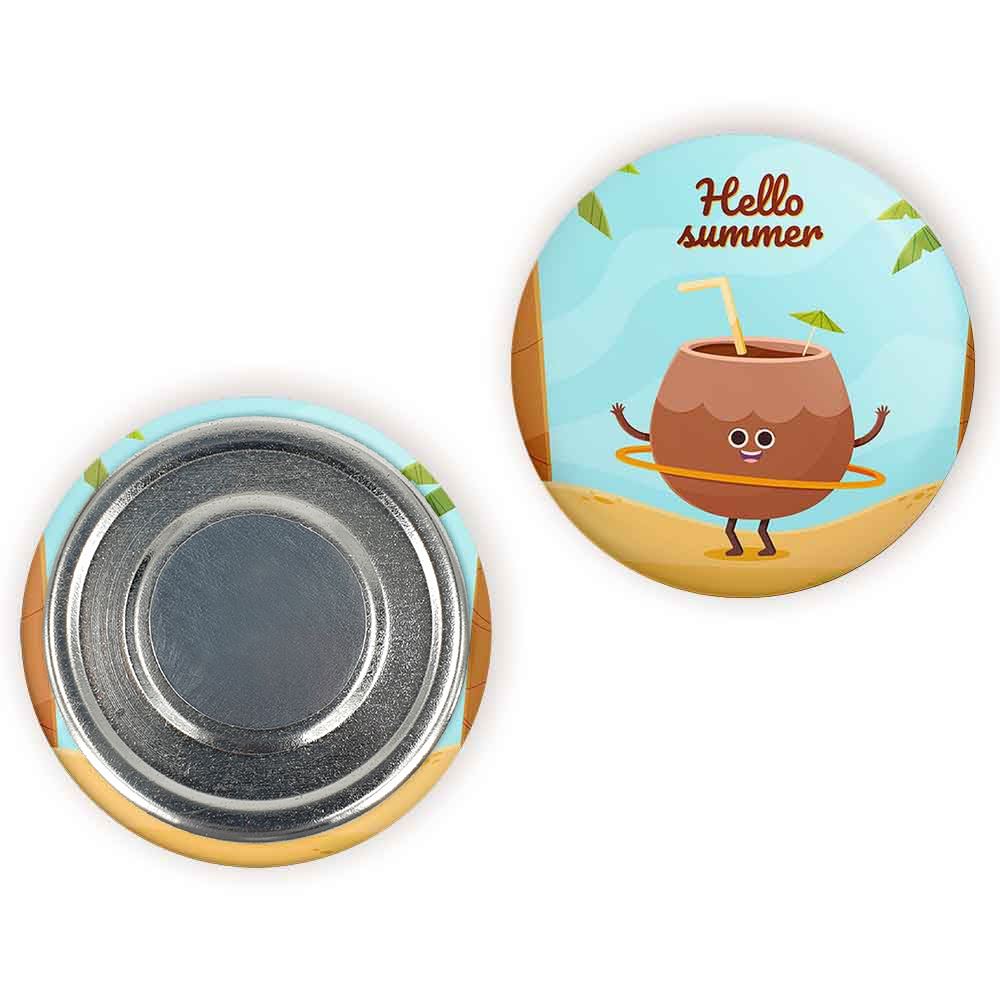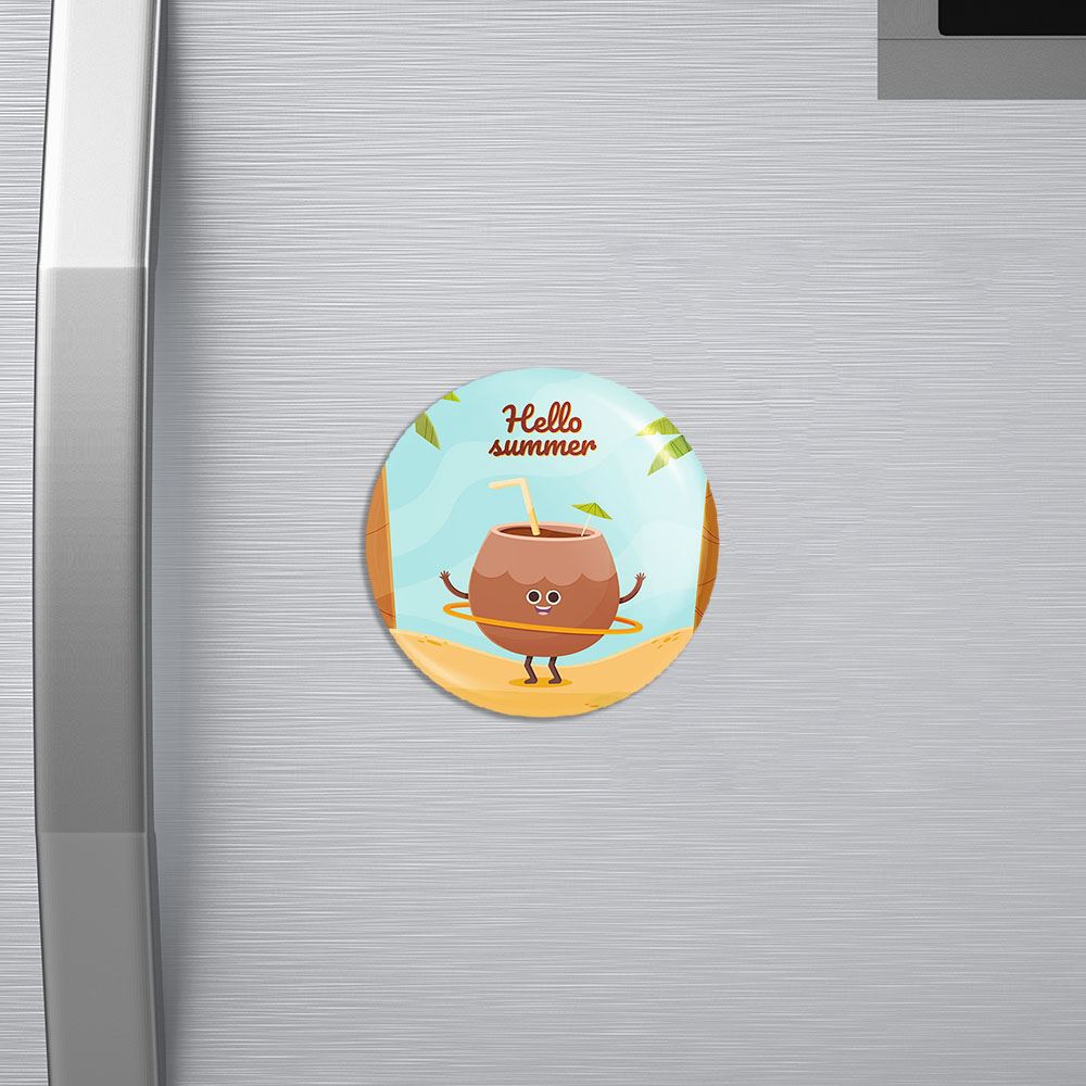 مگنت نارگیل خندالو با روکش سلفون مات مخملی ضدخش و قطعه پشتی فلزی تولید شده است که آهنربای اتمی بکار برده شده در محصول، بصورت مخفی تعبیه شده ودیده نمی شود. ضمن اینکه گیرایی بسیار بالایی داشته و به هیچ عنوان از روی یخچال نمی افتد.