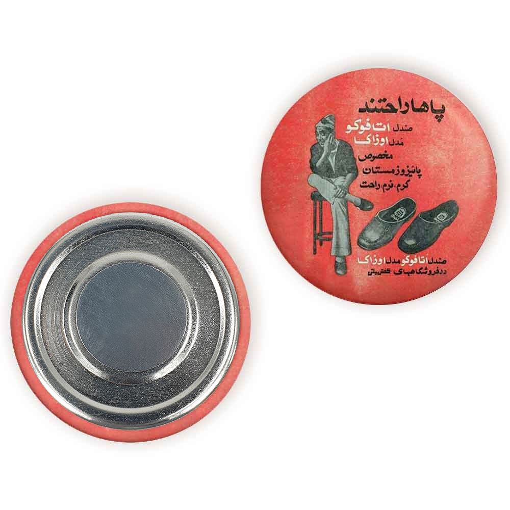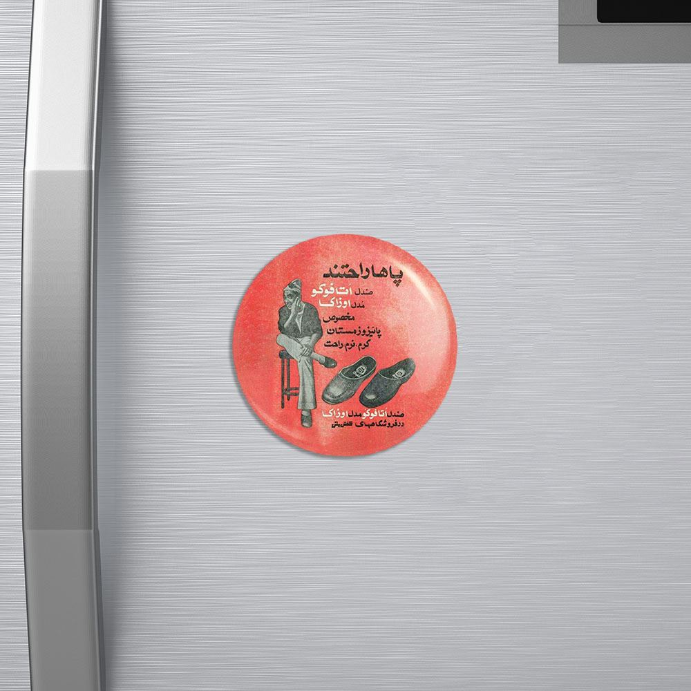 مگنت نوستالژی خندالو با روکش سلفون مات مخملی ضدخش و قطعه پشتی فلزی تولید شده است که آهنربای اتمی بکار برده شده در محصول، بصورت مخفی تعبیه شده ودیده نمی شود. ضمن اینکه گیرایی بسیار بالایی داشته و به هیچ عنوان از روی یخچال نمی افتد.