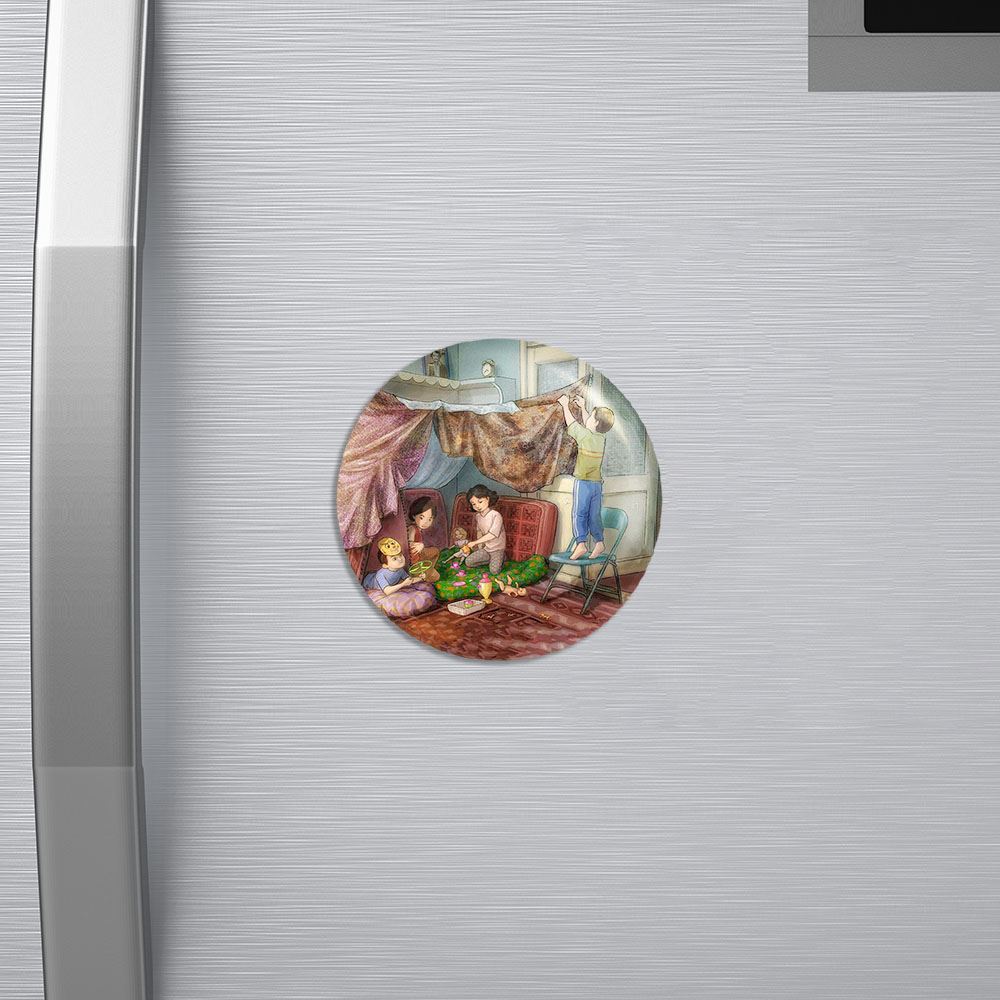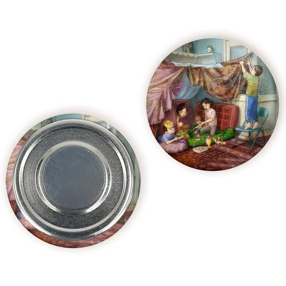 مگنت نوستالژی خندالو با روکش سلفون مات مخملی ضدخش و قطعه پشتی فلزی تولید شده است که آهنربای اتمی بکار برده شده در محصول، بصورت مخفی تعبیه شده ودیده نمی شود. ضمن اینکه گیرایی بسیار بالایی داشته و به هیچ عنوان از روی یخچال نمی افتد.