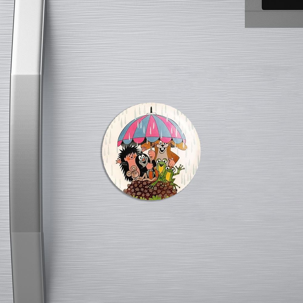 مگنت نوستالژی خندالو با روکش سلفون مات مخملی ضدخش و قطعه پشتی فلزی تولید شده است که آهنربای اتمی بکار برده شده در محصول، بصورت مخفی تعبیه شده ودیده نمی شود. ضمن اینکه گیرایی بسیار بالایی داشته و به هیچ عنوان از روی یخچال نمی افتد.