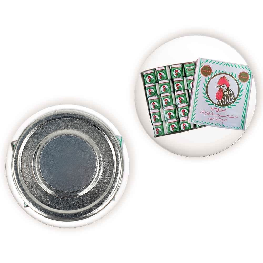 مگنت نوستالژی خندالو با روکش سلفون مات مخملی ضدخش و قطعه پشتی فلزی تولید شده است که آهنربای اتمی بکار برده شده در محصول، بصورت مخفی تعبیه شده ودیده نمی شود. ضمن اینکه گیرایی بسیار بالایی داشته و به هیچ عنوان از روی یخچال نمی افتد.