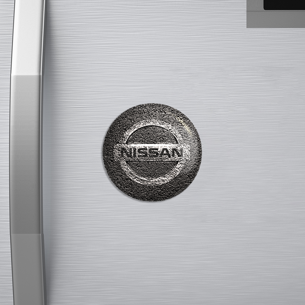 مگنت نیسان Nissan خندالو با روکش سلفون مات مخملی ضدخش و قطعه پشتی فلزی تولید شده است که آهنربای اتمی بکار برده شده در محصول، بصورت مخفی تعبیه شده ودیده نمی شود. ضمن اینکه گیرایی بسیار بالایی داشته و به هیچ عنوان از روی یخچال نمی افتد.