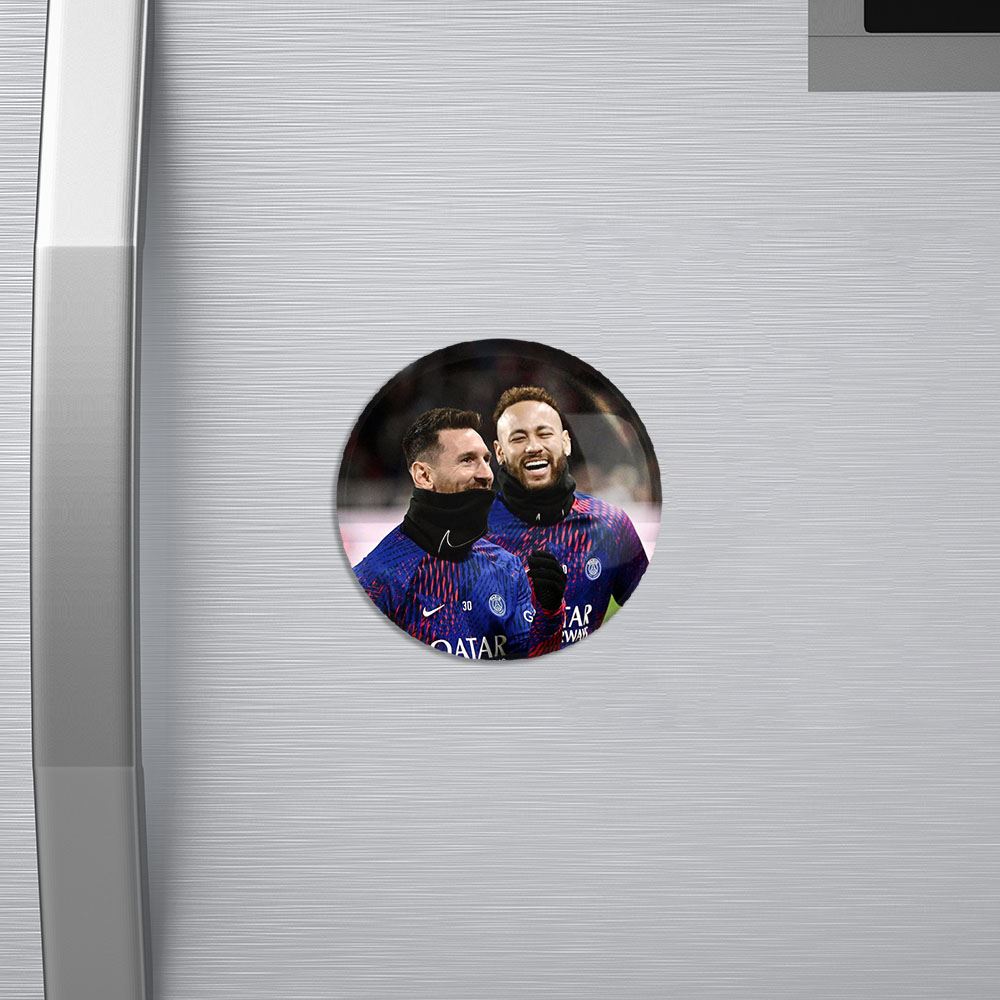 مگنت نیمار Neymar خندالو با روکش سلفون مات مخملی ضدخش و قطعه پشتی فلزی تولید شده است که آهنربای اتمی بکار برده شده در محصول، بصورت مخفی تعبیه شده ودیده نمی شود. ضمن اینکه گیرایی بسیار بالایی داشته و به هیچ عنوان از روی یخچال نمی افتد.