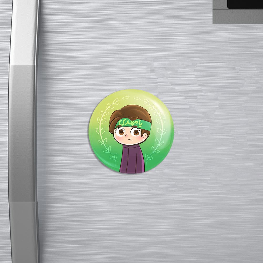 مگنت نیمه شعبان کودکانه خندالو با روکش سلفون مات مخملی ضدخش و قطعه پشتی فلزی تولید شده است که آهنربای اتمی بکار برده شده در محصول، بصورت مخفی تعبیه شده ودیده نمی شود. ضمن اینکه گیرایی بسیار بالایی داشته و به هیچ عنوان از روی یخچال نمی افتد.