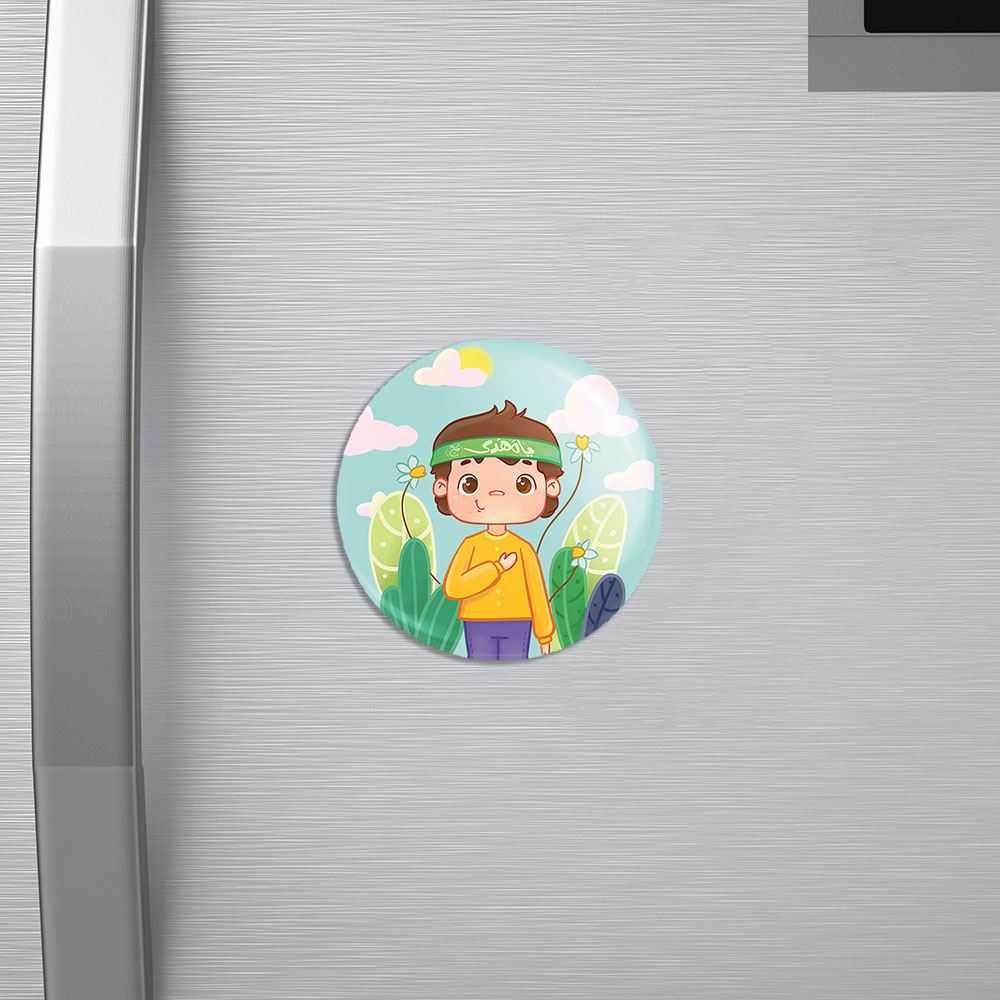 مگنت نیمه شعبان کودکانه خندالو با روکش سلفون مات مخملی ضدخش و قطعه پشتی فلزی تولید شده است که آهنربای اتمی بکار برده شده در محصول، بصورت مخفی تعبیه شده ودیده نمی شود. ضمن اینکه گیرایی بسیار بالایی داشته و به هیچ عنوان از روی یخچال نمی افتد.