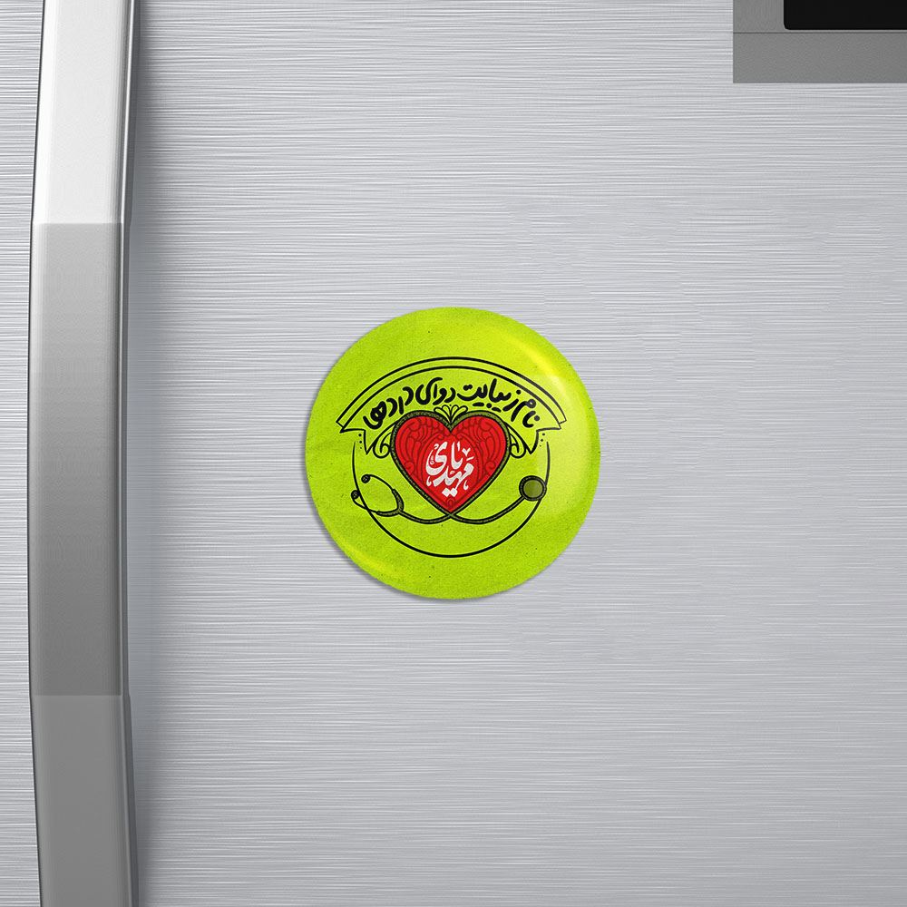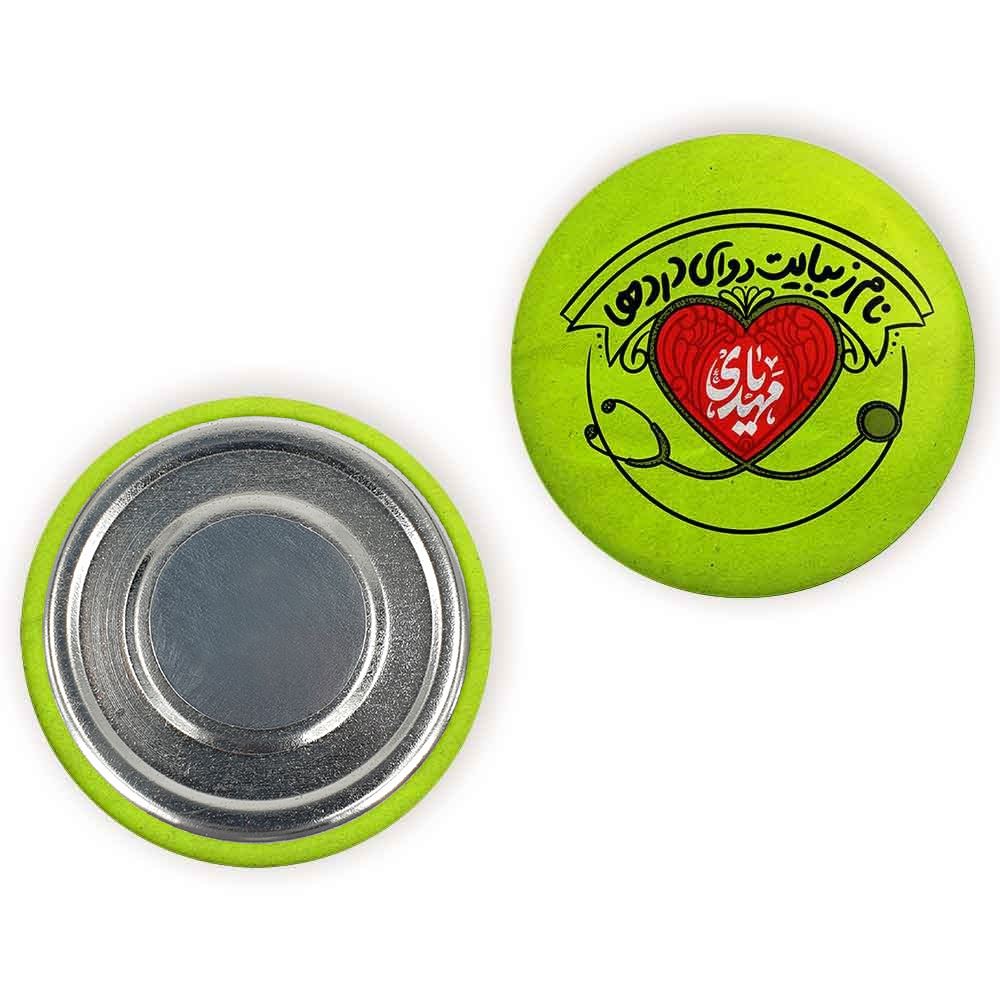 مگنت نیمه شعبان خندالو با روکش سلفون مات مخملی ضدخش و قطعه پشتی فلزی تولید شده است که آهنربای اتمی بکار برده شده در محصول، بصورت مخفی تعبیه شده ودیده نمی شود. ضمن اینکه گیرایی بسیار بالایی داشته و به هیچ عنوان از روی یخچال نمی افتد.