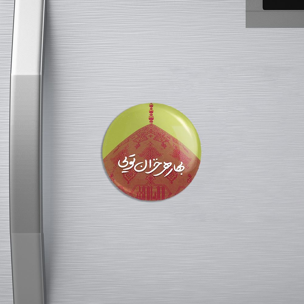 مگنت نیمه شعبان خندالو با روکش سلفون مات مخملی ضدخش و قطعه پشتی فلزی تولید شده است که آهنربای اتمی بکار برده شده در محصول، بصورت مخفی تعبیه شده ودیده نمی شود. ضمن اینکه گیرایی بسیار بالایی داشته و به هیچ عنوان از روی یخچال نمی افتد.