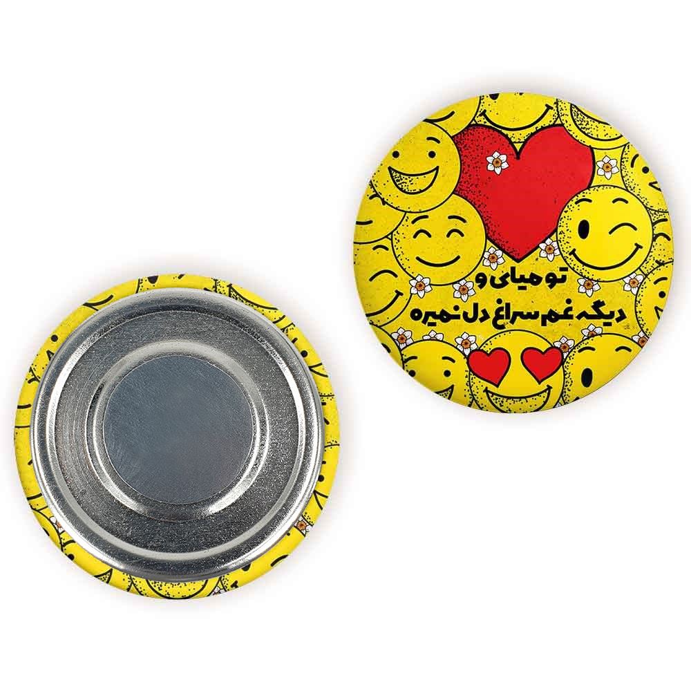 مگنت نیمه شعبان خندالو با روکش سلفون مات مخملی ضدخش و قطعه پشتی فلزی تولید شده است که آهنربای اتمی بکار برده شده در محصول، بصورت مخفی تعبیه شده ودیده نمی شود. ضمن اینکه گیرایی بسیار بالایی داشته و به هیچ عنوان از روی یخچال نمی افتد.