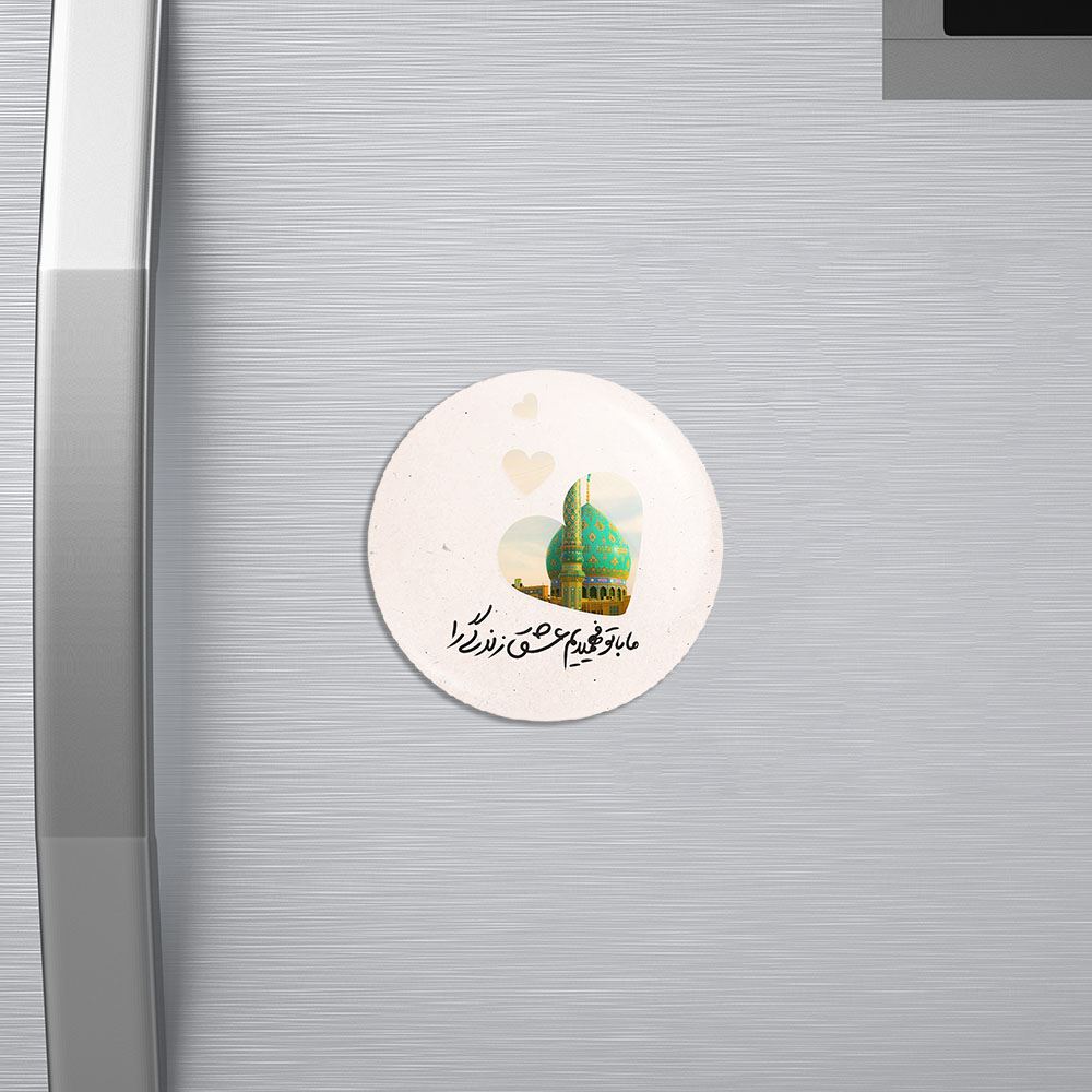 مگنت نیمه شعبان خندالو با روکش سلفون مات مخملی ضدخش و قطعه پشتی فلزی تولید شده است که آهنربای اتمی بکار برده شده در محصول، بصورت مخفی تعبیه شده ودیده نمی شود. ضمن اینکه گیرایی بسیار بالایی داشته و به هیچ عنوان از روی یخچال نمی افتد.